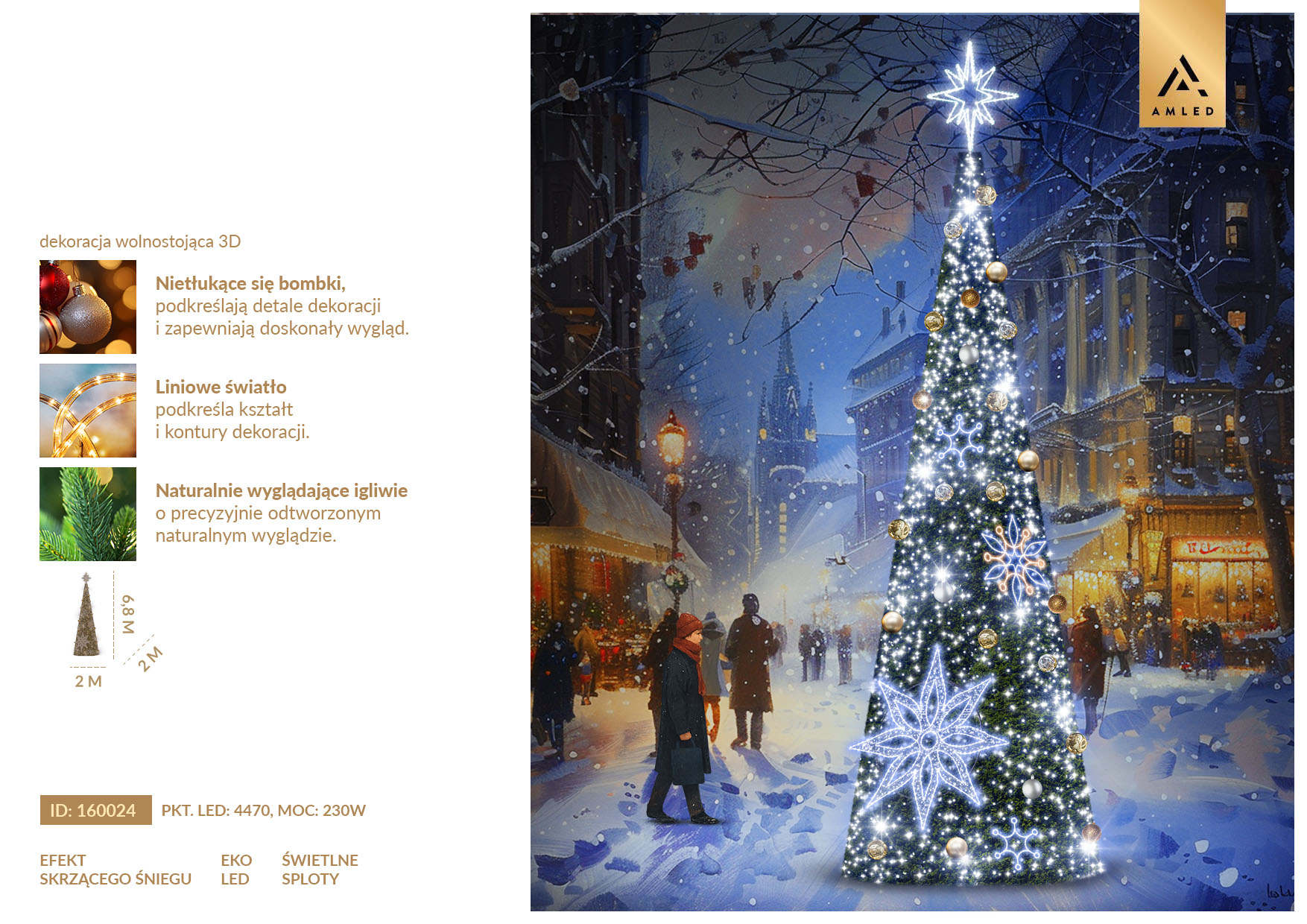 Oferowane przez nas choinki stożkowe są dobrze zaprojektowane i dostarczane w gotowych udekorowanych modułach, dzięki temu są łatwe w montażu i demontażu oraz magazynowaniu. Posezonowa konserwacja również jest o wiele prostsza. System oświetlenia jest wieloelementowy, oparty na systemowych złączkach i szybki w ewentualnej wymianie serwisowej.