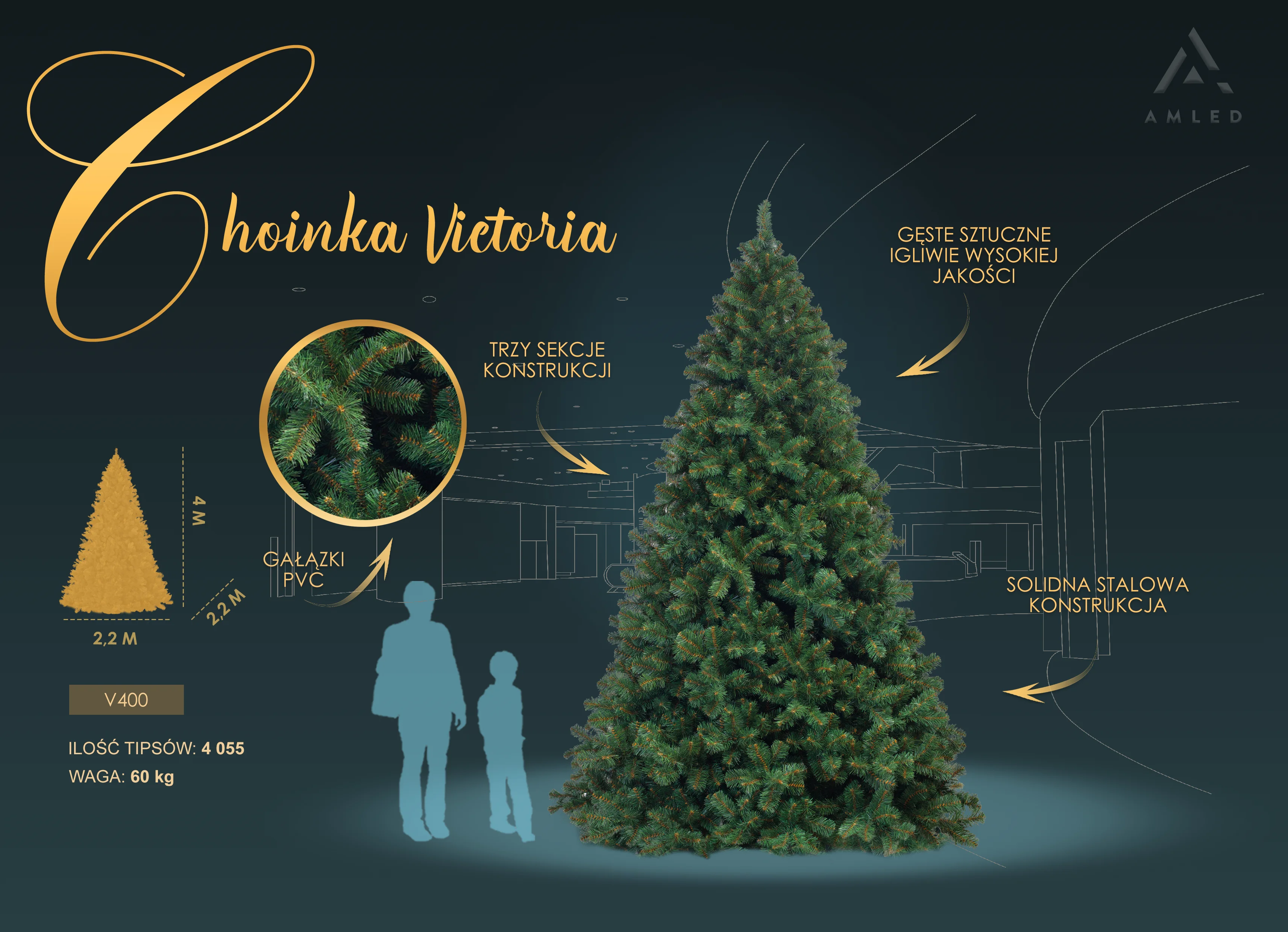 Choinka Victoria dostępna jest wariantach wysokości od 3 metrów do 10 metrów.