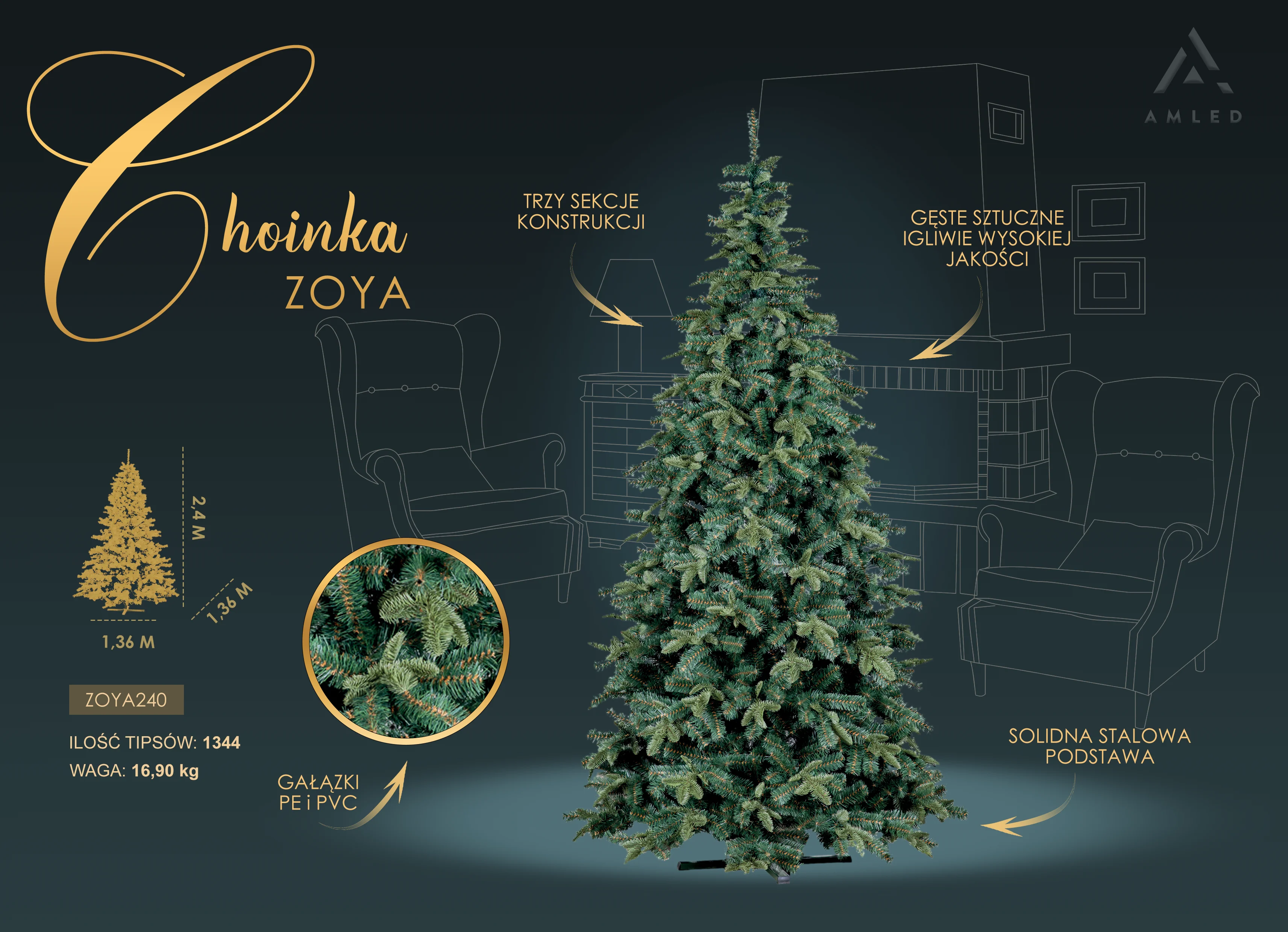 Choinka sztuczna zielony świerk ZOYA 240 cm wysokości