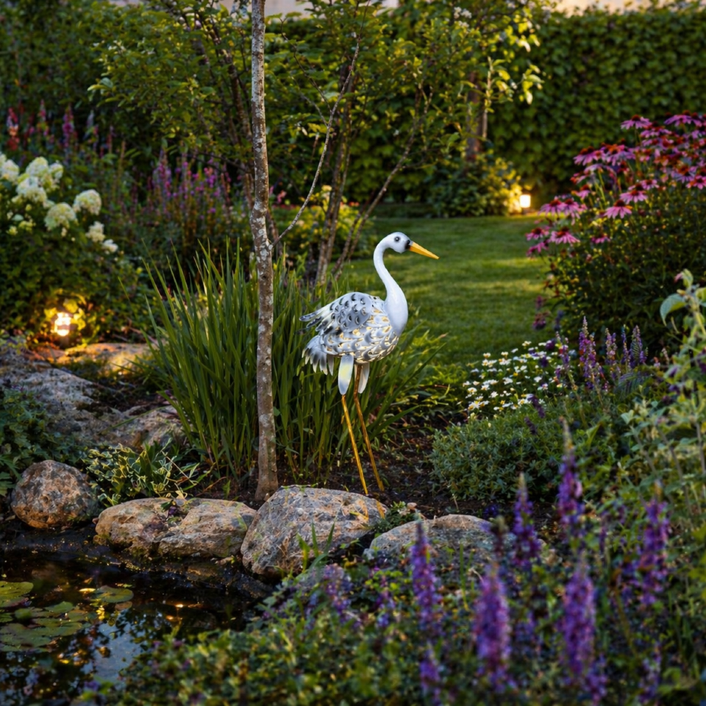 Realistyczne i stylowe wykonanie - czapla została wykonana z malowanego metalu, z precyzyjnie odwzorowanymi detalami, które nadają jej wyrafinowanego charakteru.