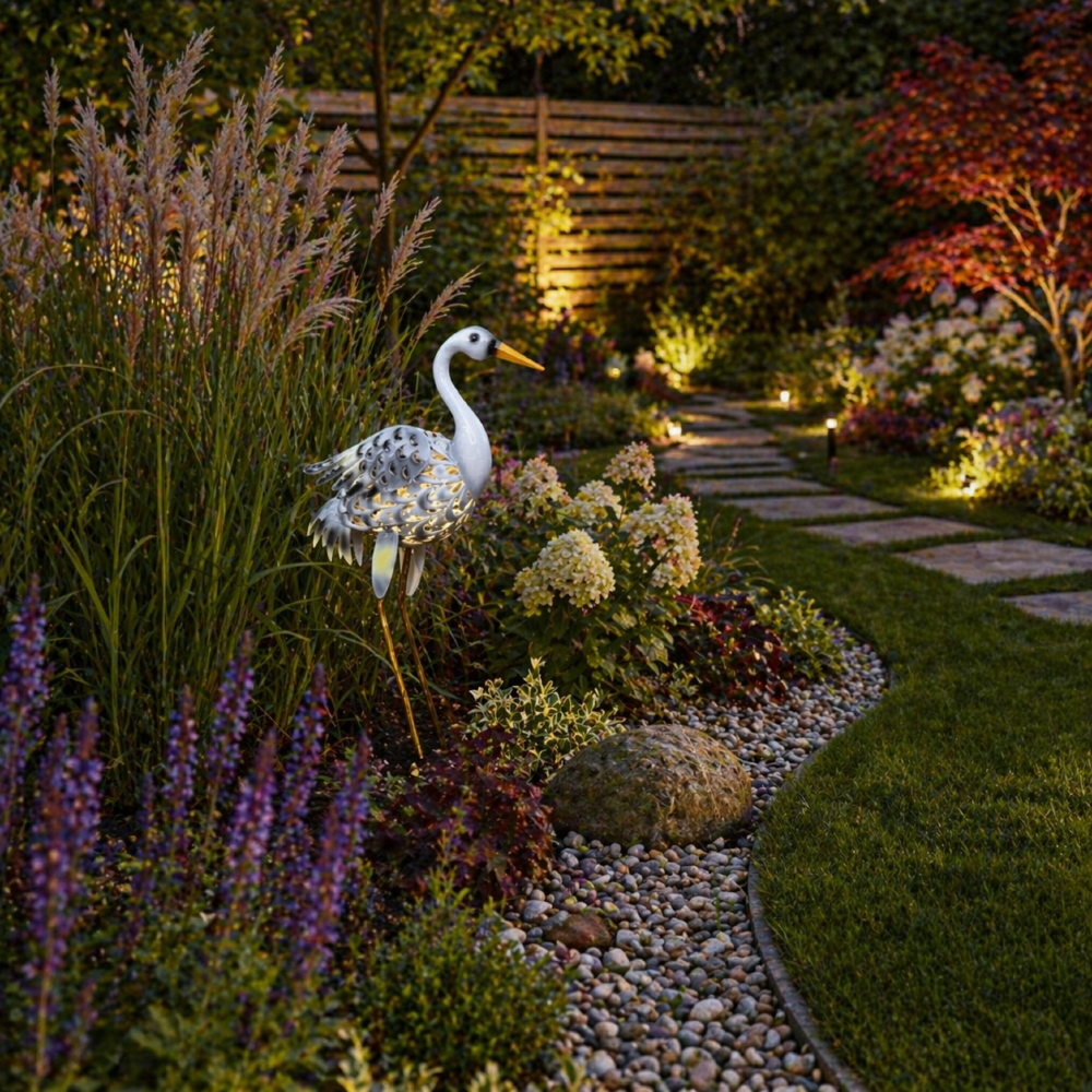 Dodaj niepowtarzalny urok swojej przestrzeni dzięki eleganckiej lampie solarnej w kształcie czapli. Ta wyjątkowa dekoracja łączy w sobie funkcjonalność i estetykę, tworząc klimatyczne oświetlenie w ogrodzie, na tarasie czy przy oczku wodnym. Doskonała dekoracja dla miłośników natury i eleganckiego designu, która nadaje przestrzeni wyjątkowego charakteru.
