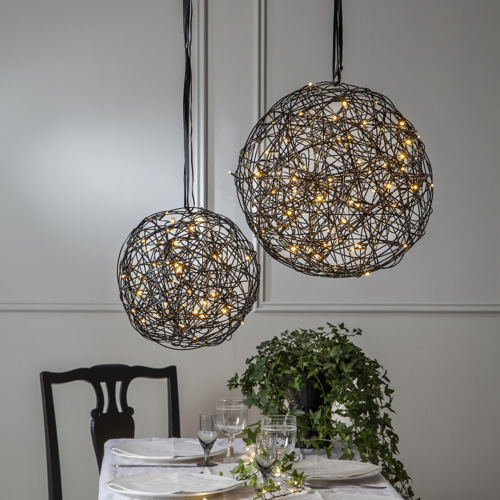 Nastrojowe oświetlenie - kula Trassel wyposażona jest w subtelny łańcuch LED, emitujący ciepłe białe światło. Doskonale komponuje się w salonie, na tarasie czy w ogrodzie, tworząc wyjątkowy, klimatyczny nastrój.