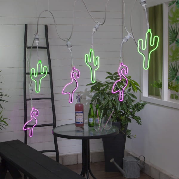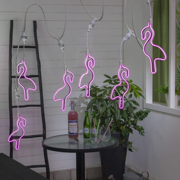 Nadaj swojej przestrzeni lekki, wakacyjny charakter dzięki dekoracji LED w kształcie flaminga, która przyciąga wzrok intensywnym, neonowym światłem. To wyrazisty akcent, który ożywia aranżacje i wprowadza swobodny, tropikalny klimat – idealny zarówno do wnętrz, jak i przestrzeni zewnętrznych.