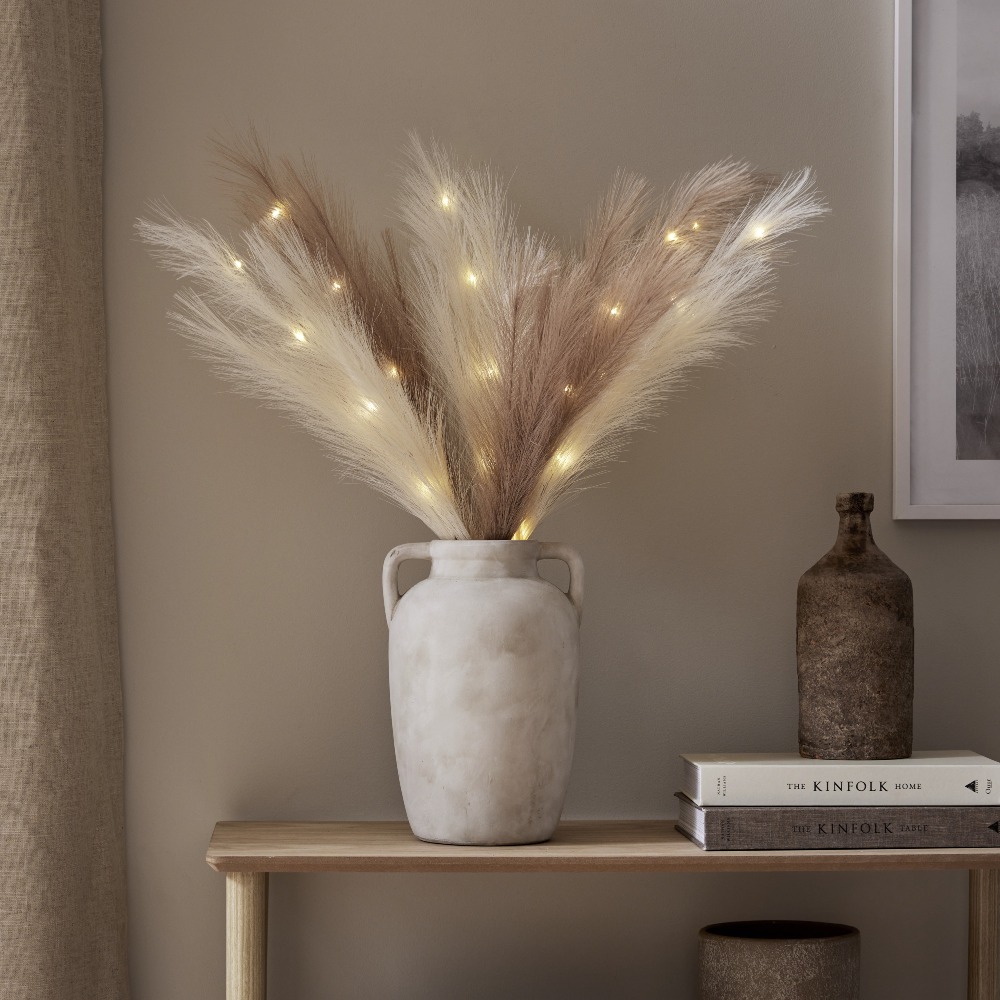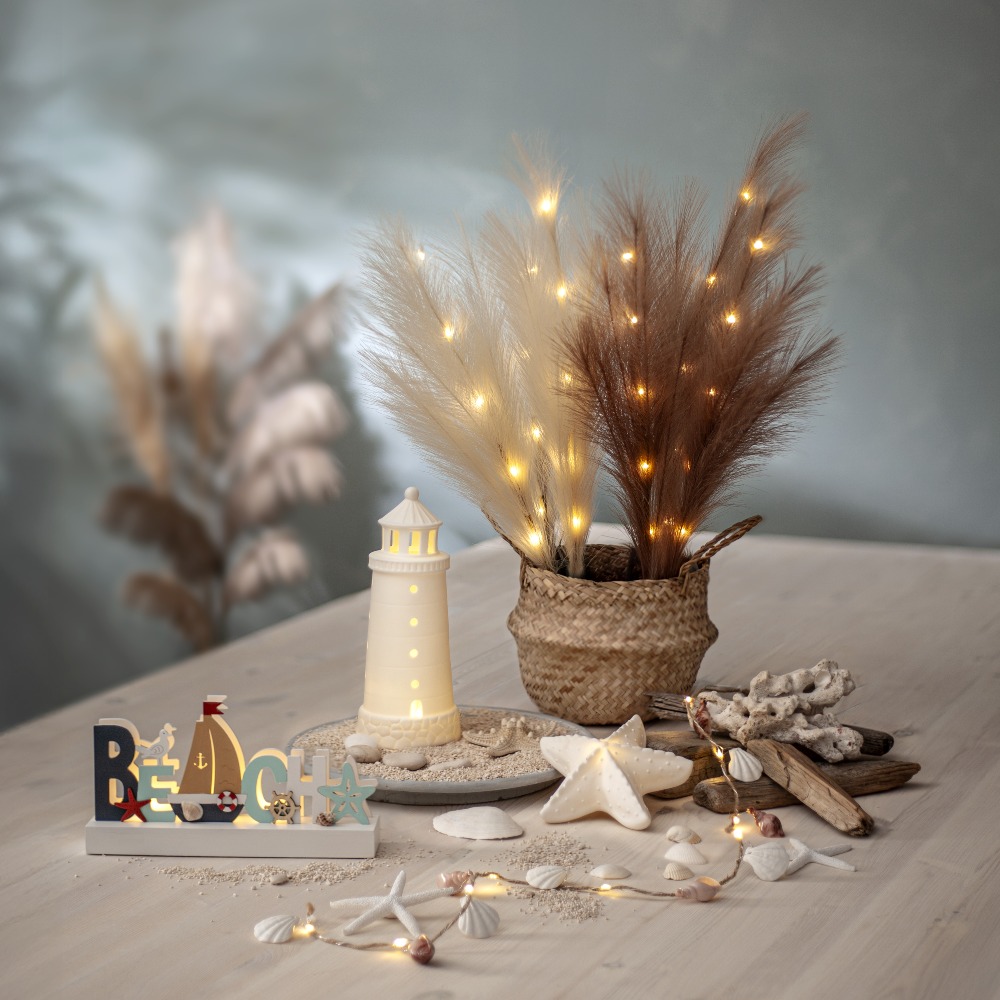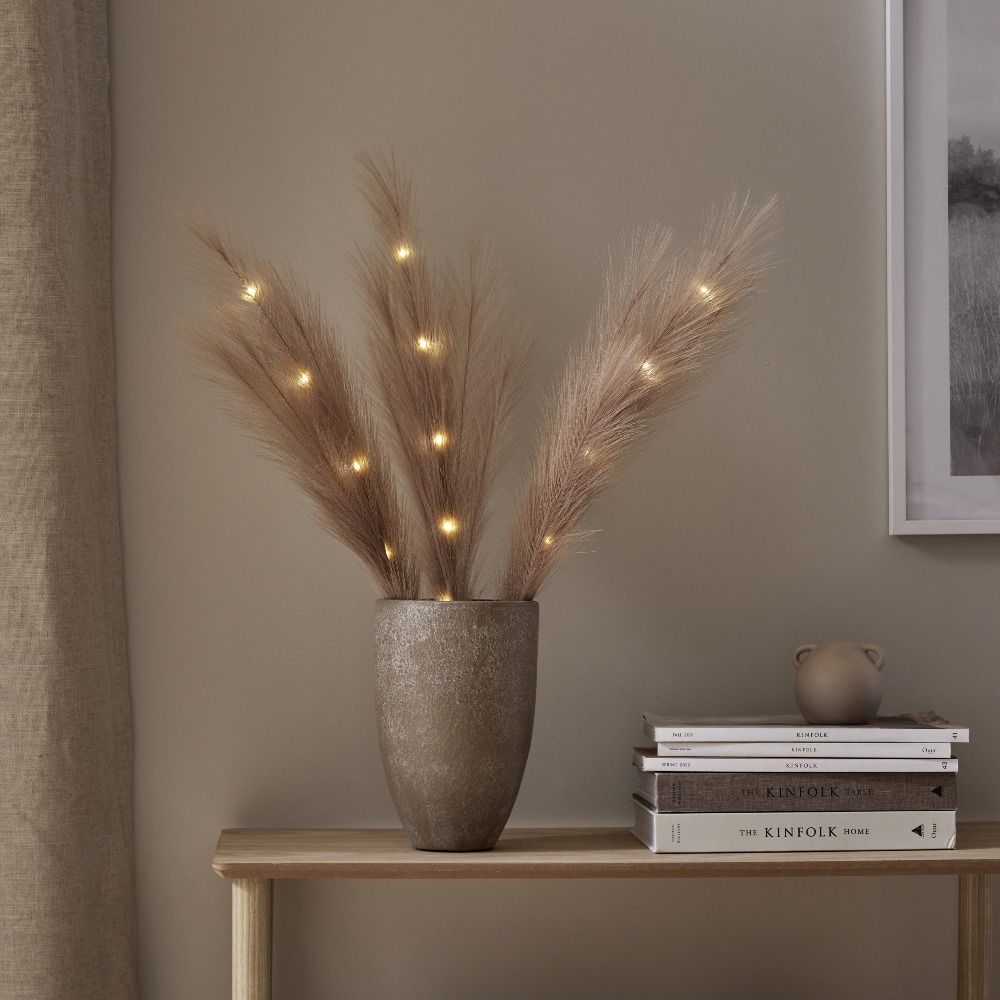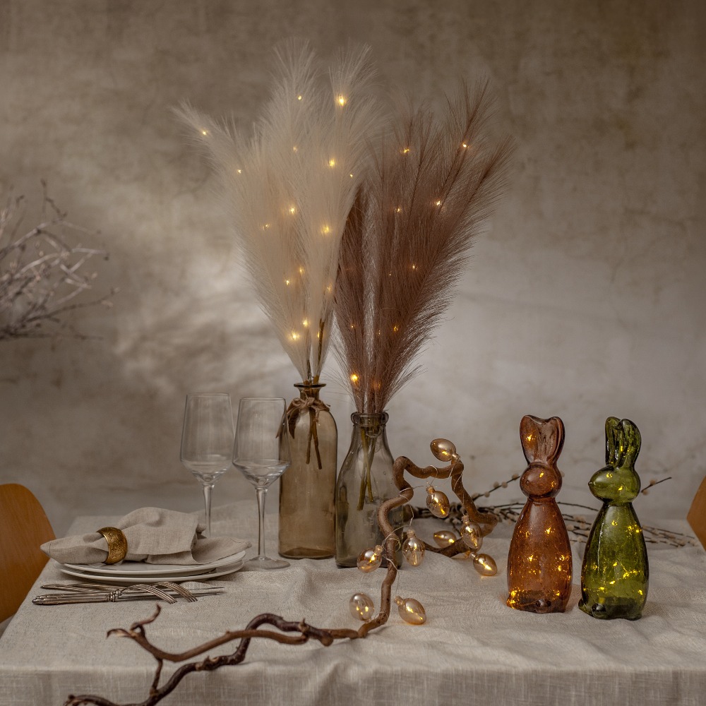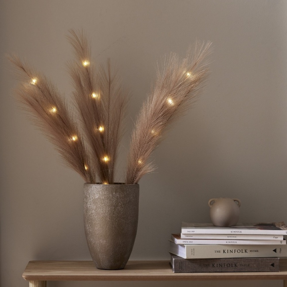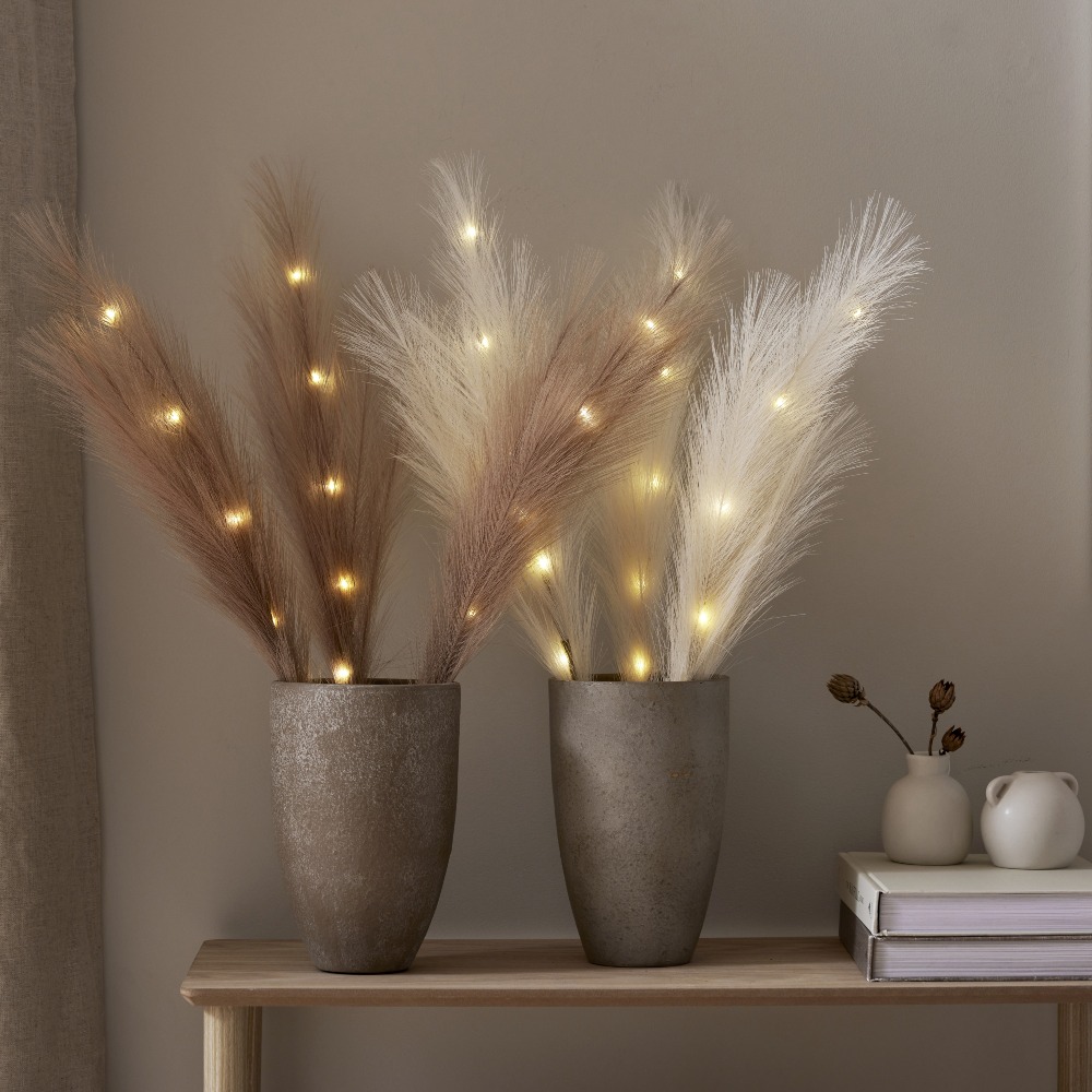 Dekoracyjna ozdoba z dużymi, sztucznymi piórami w brązowym kolorze to wyjątkowy dodatek, który wprowadzi do wnętrza przytulność i naturalny charakter. Subtelna forma oraz ciepła, stonowana kolorystyka sprawiają, że dekoracja doskonale komponuje się z różnymi aranżacjami – od naturalnych po nowoczesne. Wbudowane diody LED emitują ciepłe, przyjemne światło, tworząc nastrojowy efekt dekoracyjny. To prosty sposób na stworzenie klimatycznej dekoracji w salonie, sypialni lub na komodzie.