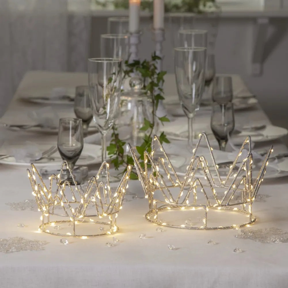 Piękna metalowa dekoracja w formie korony to wyjątkowy element, który doda elegancji i subtelnego uroku każdemu wnętrzu. Wyposażona w 70 ciepłych, białych diod LED DEW DROP, emituje delikatne światło, które tworzy przytulną i nastrojową atmosferę. Zasilana bateriami, dekoracja posiada funkcję timera, co zapewnia wygodne użytkowanie – światła automatycznie włączają się i wyłączają. Idealna do dekoracji stołu, komody lub parapetu, ta dekoracja wprowadzi świąteczny nastrój i elegancję do każdego pomieszczenia.