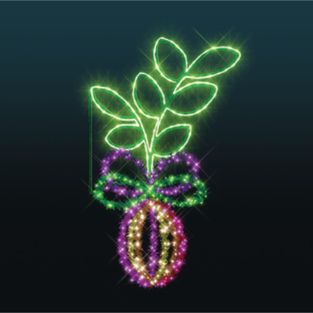 Dekoracja latarniowa Ornament Wielkanocny 2D LED to wyjątkowy element świątecznej aranżacji, który łączy w sobie klasyczną symbolikę Wielkanocy z nowoczesnym designem. Inspirowana wiosenną naturą kompozycja zachwyca harmonijnym połączeniem żywej zieleni liści, subtelnych fioletowych akcentów i dekoracyjnej wstążki, tworząc efektowną iluminację miejską. Ozdoba doskonale wpisuje się w klimat świąt, podkreślając wyjątkowy charakter ulic, parków czy placów miejskich.