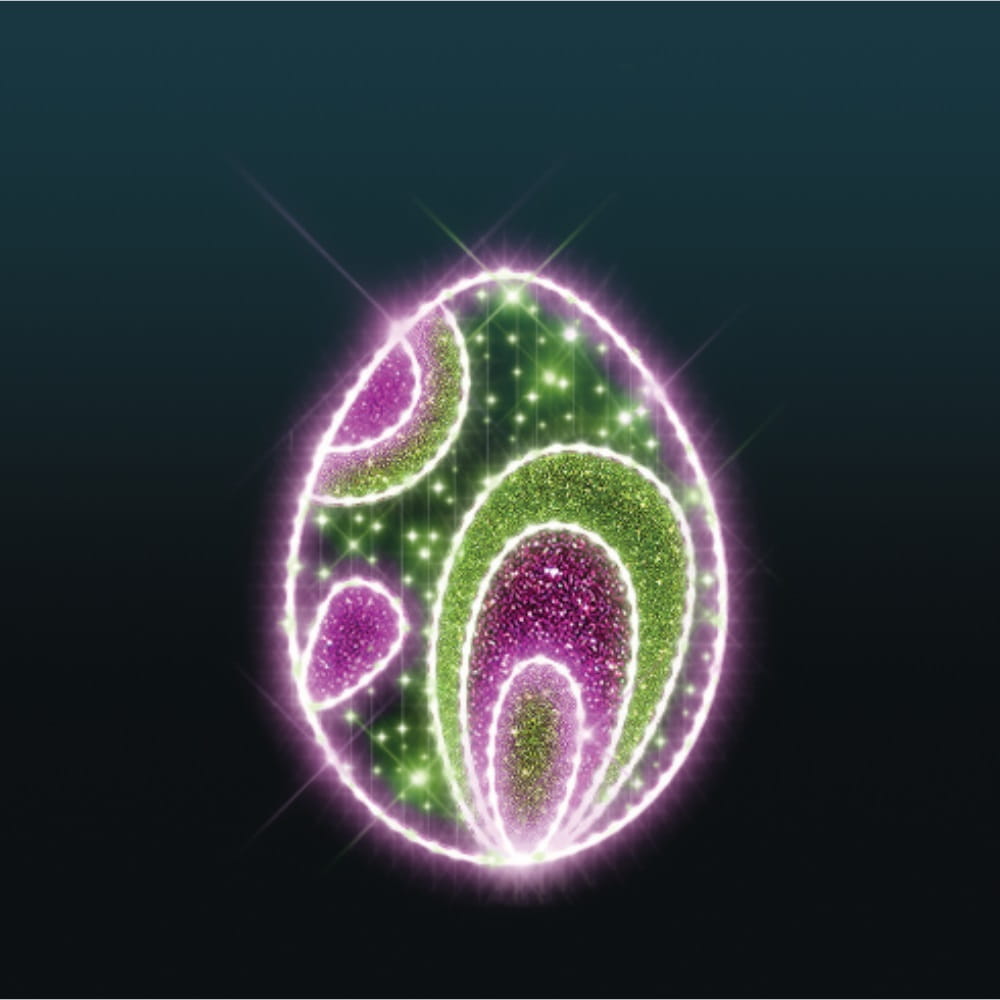 Efektowne podświetlenie LED - pisanka 2D została wyposażona w energooszczędne diody LED o różnorodnych barwach światła – zielonym, białym i różowym. Dodatkowy efekt błysku w niektórych diodach nadaje dekoracji wyjątkowego charakteru, podkreślając jej świąteczny wygląd zarówno w dzień, jak i po zmroku.