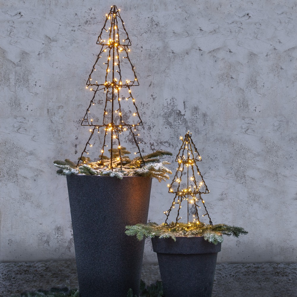 Choinka FOLDY o wysokości 90 cm to stylowa dekoracja świąteczna, stworzona z myślą o ekspozycji zewnętrznej. Wyposażona w ciepłe światło LED, wprowadza przytulny klimat i subtelny blask do ogrodu, na balkon lub taras. Jej stabilna konstrukcja oraz odporność na warunki atmosferyczne sprawiają, że świetnie sprawdzi się przez cały sezon zimowy – zarówno solo, jak i w zestawieniu z innymi dekoracjami. Idealna do ustawienia w donicy, przy wejściu lub jako część większej świątecznej aranżacji.