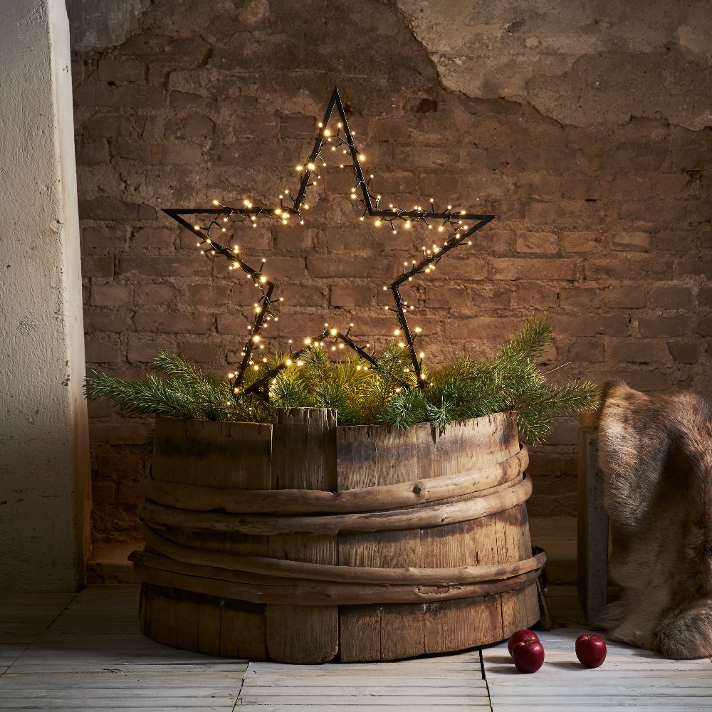 Gwiazda SPIKY o średnicy 80 cm to efektowna i wszechstronna dekoracja świąteczna, która emituje ciepłe, przytulne światło, wprowadzając magiczny nastrój do każdej aranżacji. Dzięki przemyślanej konstrukcji i możliwości demontażu sztyc, może być zarówno wbita w podłoże, jak i zawieszona, co pozwala na dużą swobodę w doborze miejsca ekspozycji. Dekoracja przystosowana jest do warunków zewnętrznych, dlatego doskonale sprawdzi się w ogrodzie, na tarasie, balkonie, ale również w domowych wnętrzach. Wyposażona w praktyczny timer, zapewnia codzienne, automatyczne działanie bez potrzeby pamiętania o włączaniu.