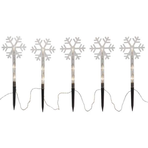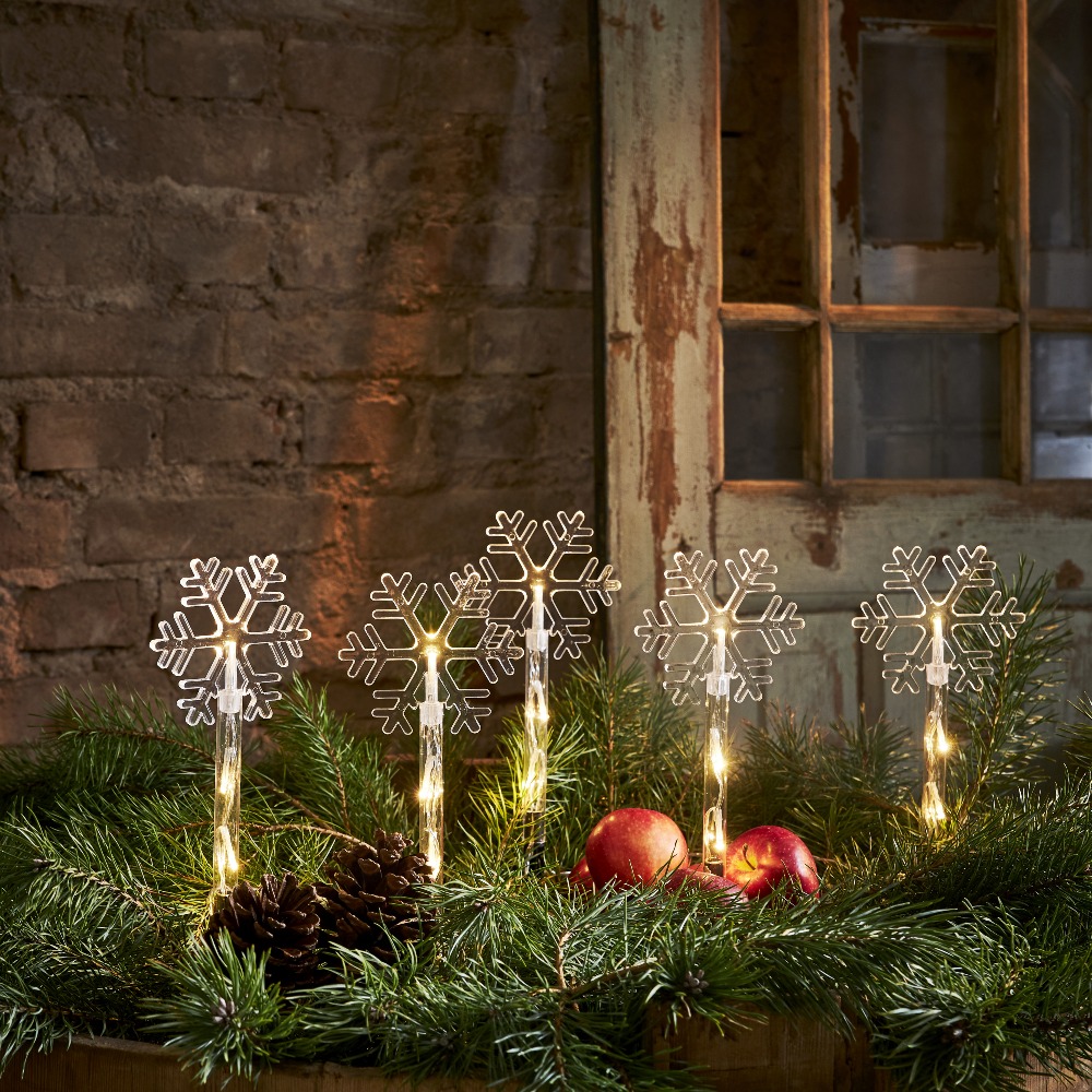 Zestaw 5 śnieżynek – dekoracja pozwala w efektowny sposób podkreślić alejki, rabaty lub wejście do domu.