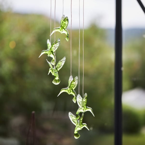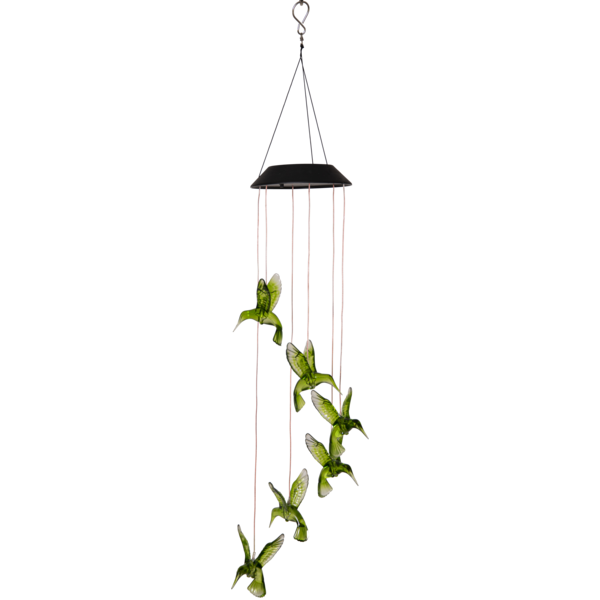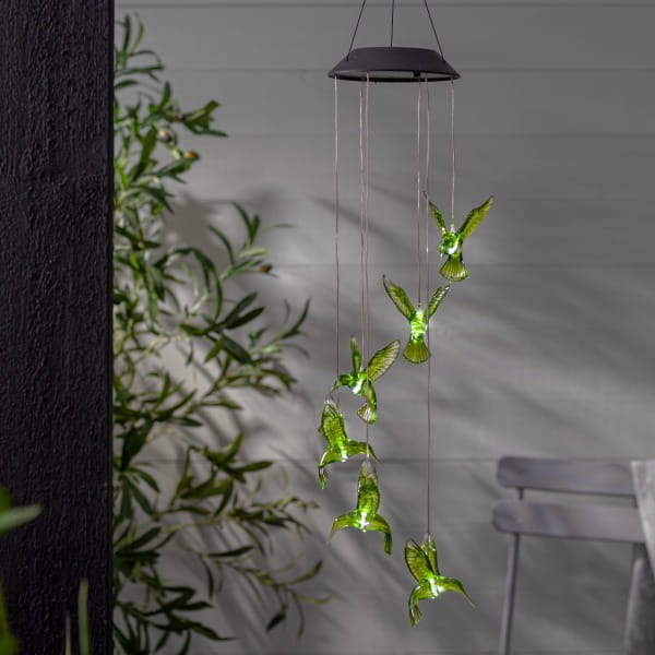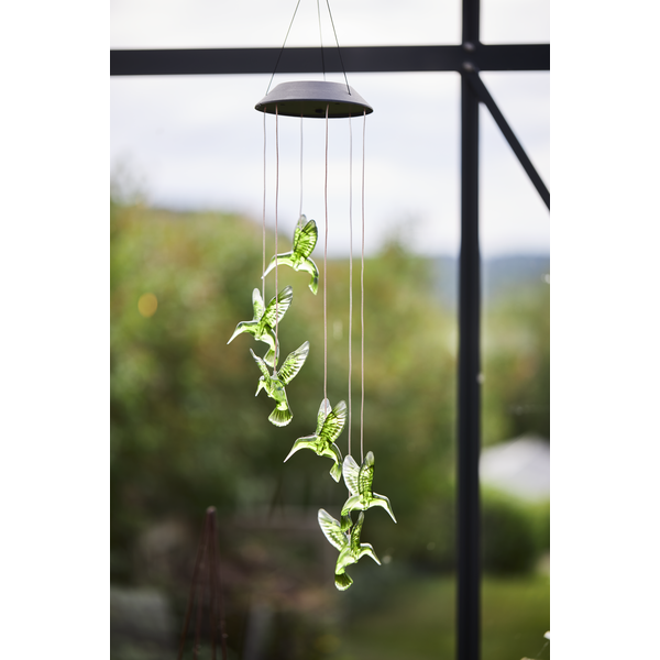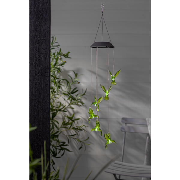 Efektowne oświetlenie po zmroku - dzięki wbudowanym diodom LED, kolibry rozświetlają się w różnych kolorach, subtelnie podkreślając atmosferę otoczenia i nadając mu bajkowy wygląd.
