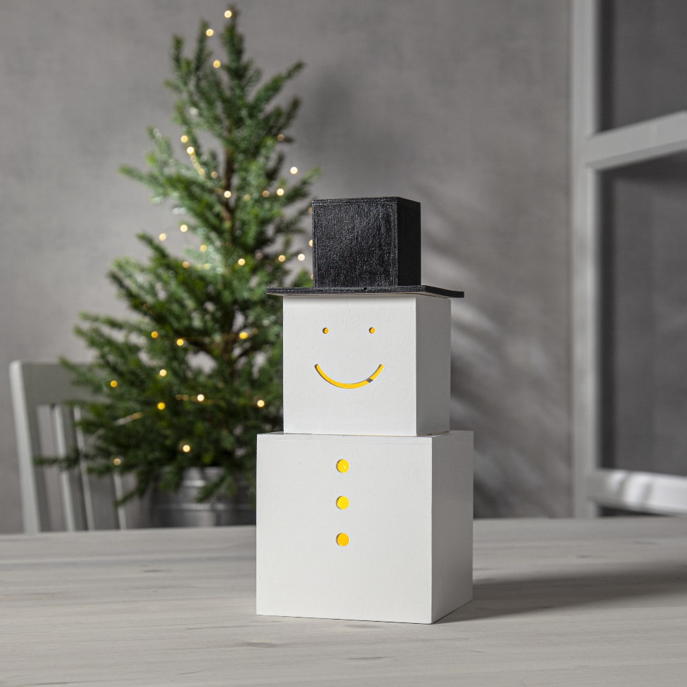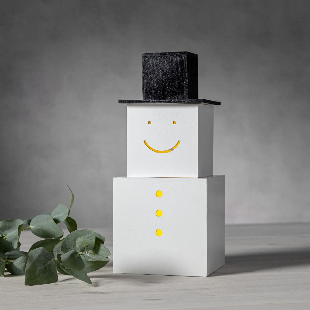 Wprowadź do swojego wnętrza odrobinę świątecznej radości dzięki uroczemu drewnianemu bałwanowi z podświetleniem LED. Jego uśmiechnięta twarz, klasyczny czarny kapelusz i subtelne detale sprawiają, że doskonale wpisuje się w ciepłą, bożonarodzeniową atmosferę. Zasilany bateriami i wyposażony w funkcję timera, świeci ciepłym, białym światłem, które rozprasza zimowy mrok i wprowadza do wnętrza magiczny klimat.