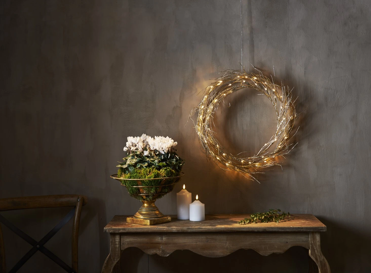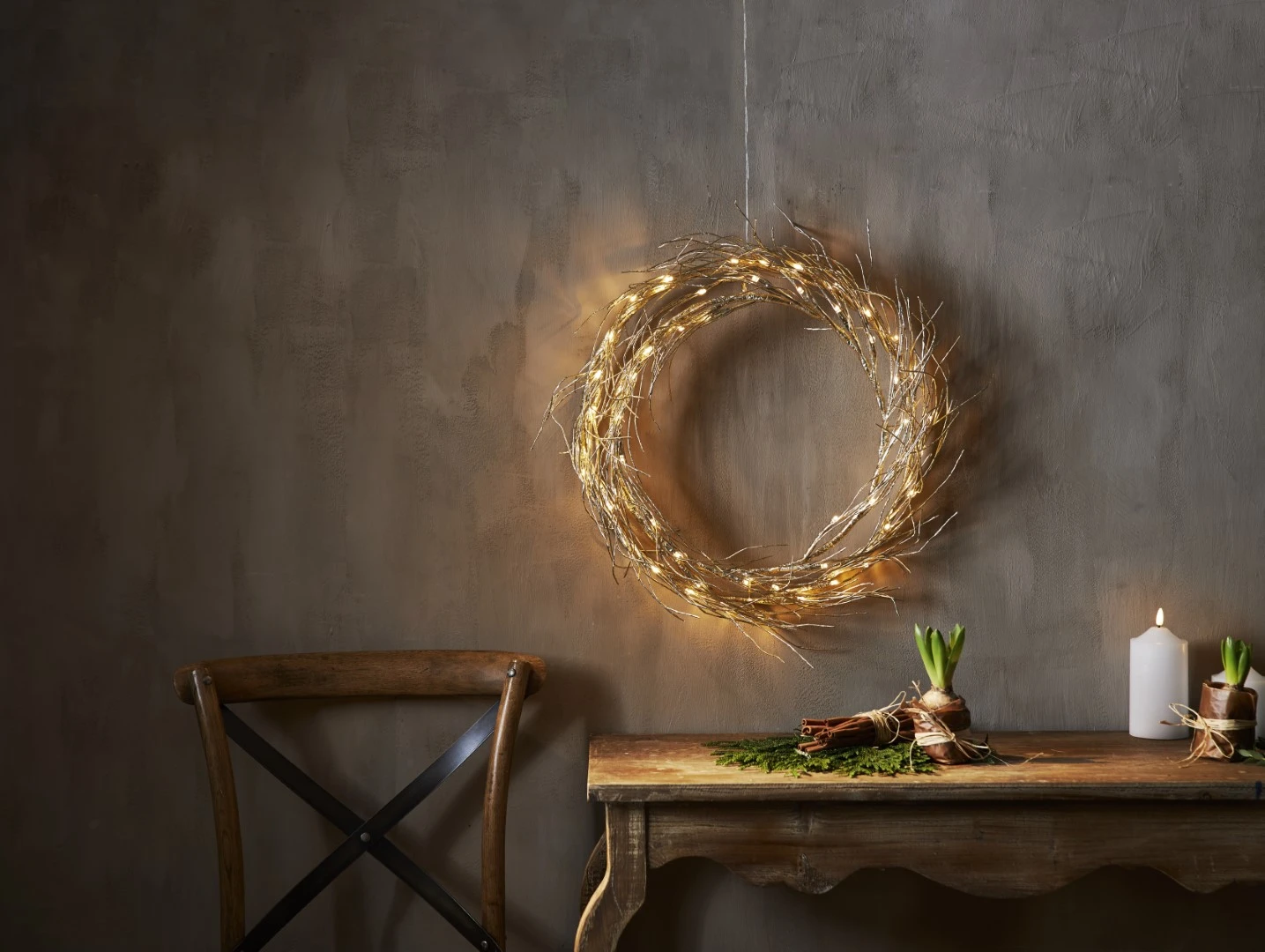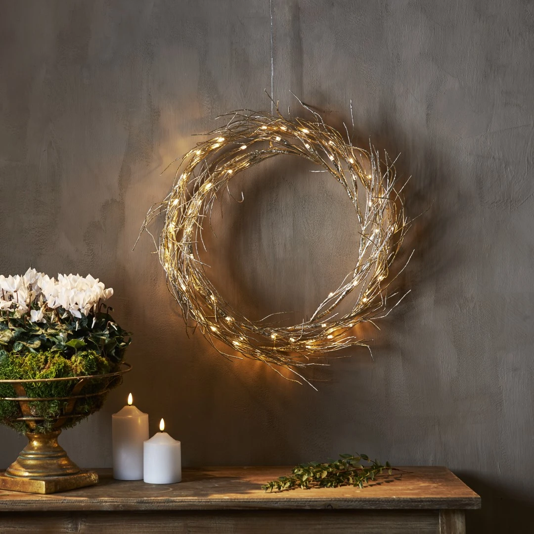 Elegancka i subtelna dekoracja – złota, podwójna konstrukcja oraz 50 punktów LED tworzą pełny, efektowny wygląd, który przyciąga wzrok, dodając elegancji.