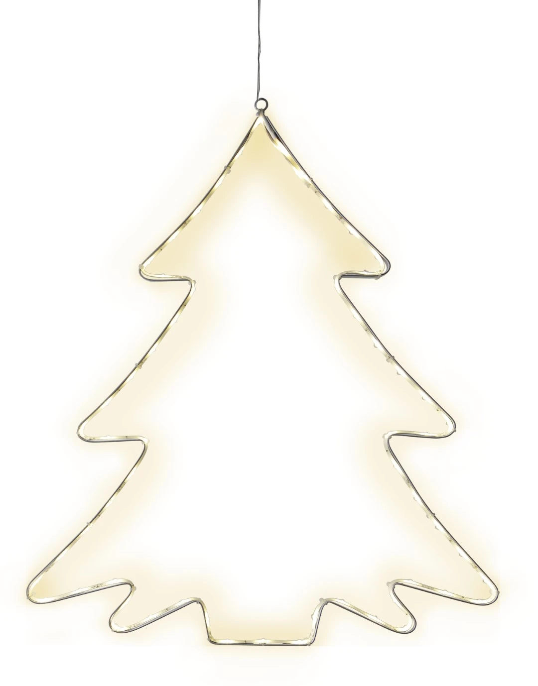 Dekoracja LED w kształcie choinki na białym tle, podświetlona ciepłym światłem tworzącym delikatny, świąteczny akcent w lekkiej, nowoczesnej formie.