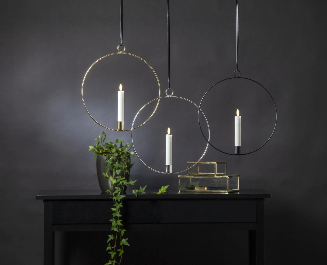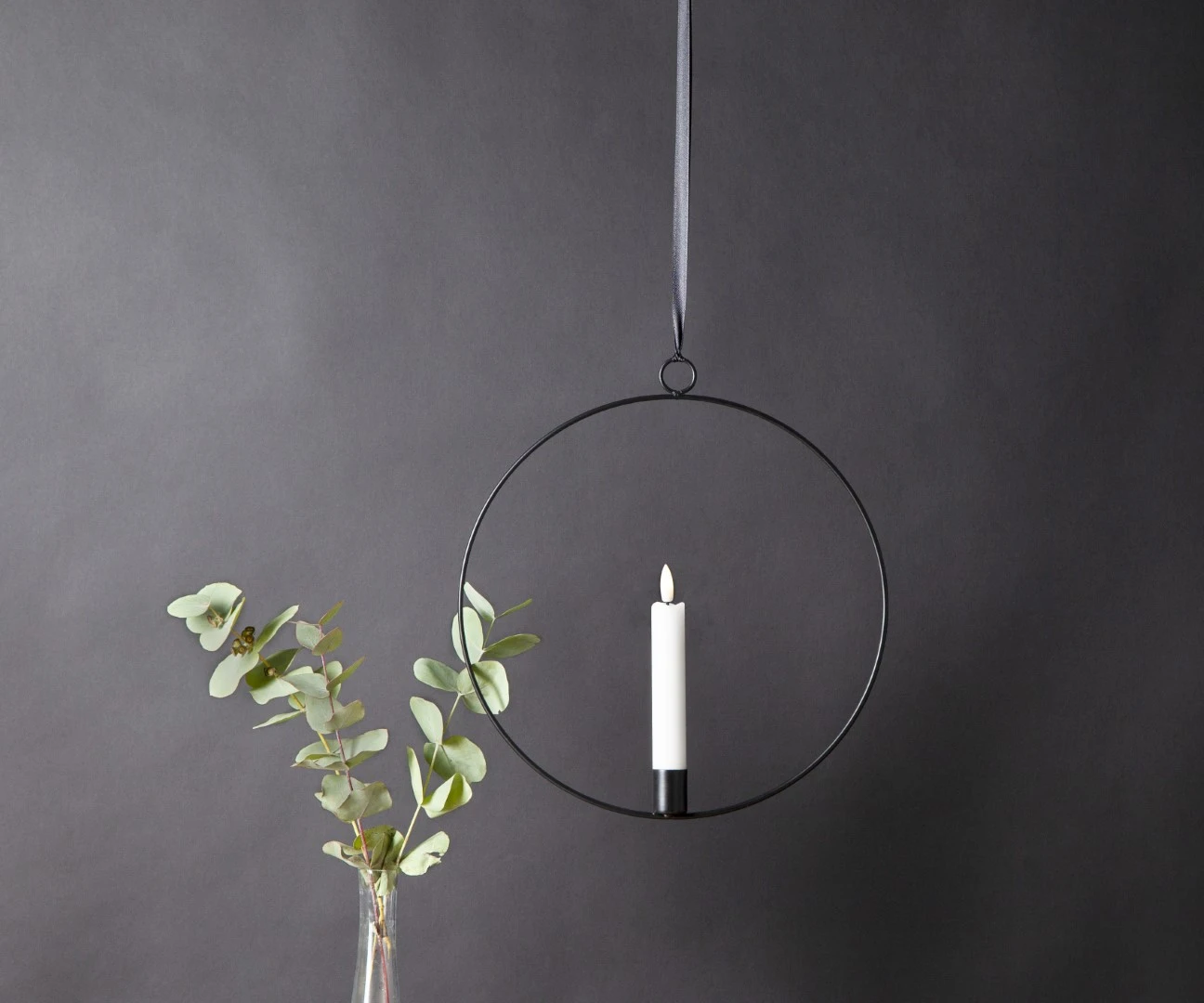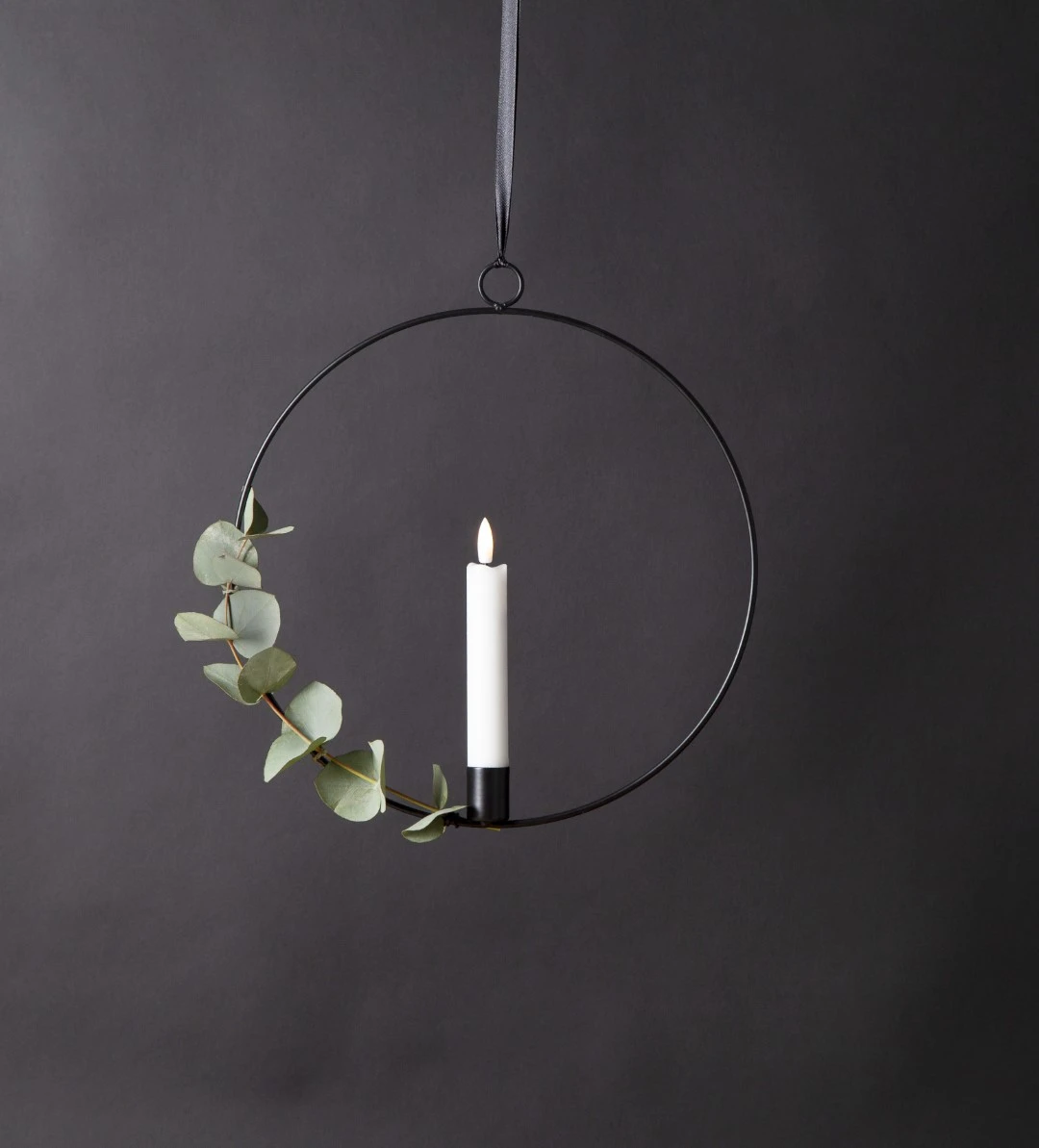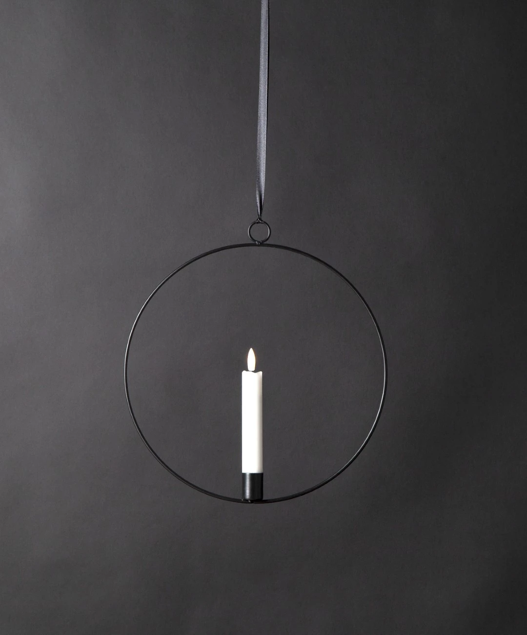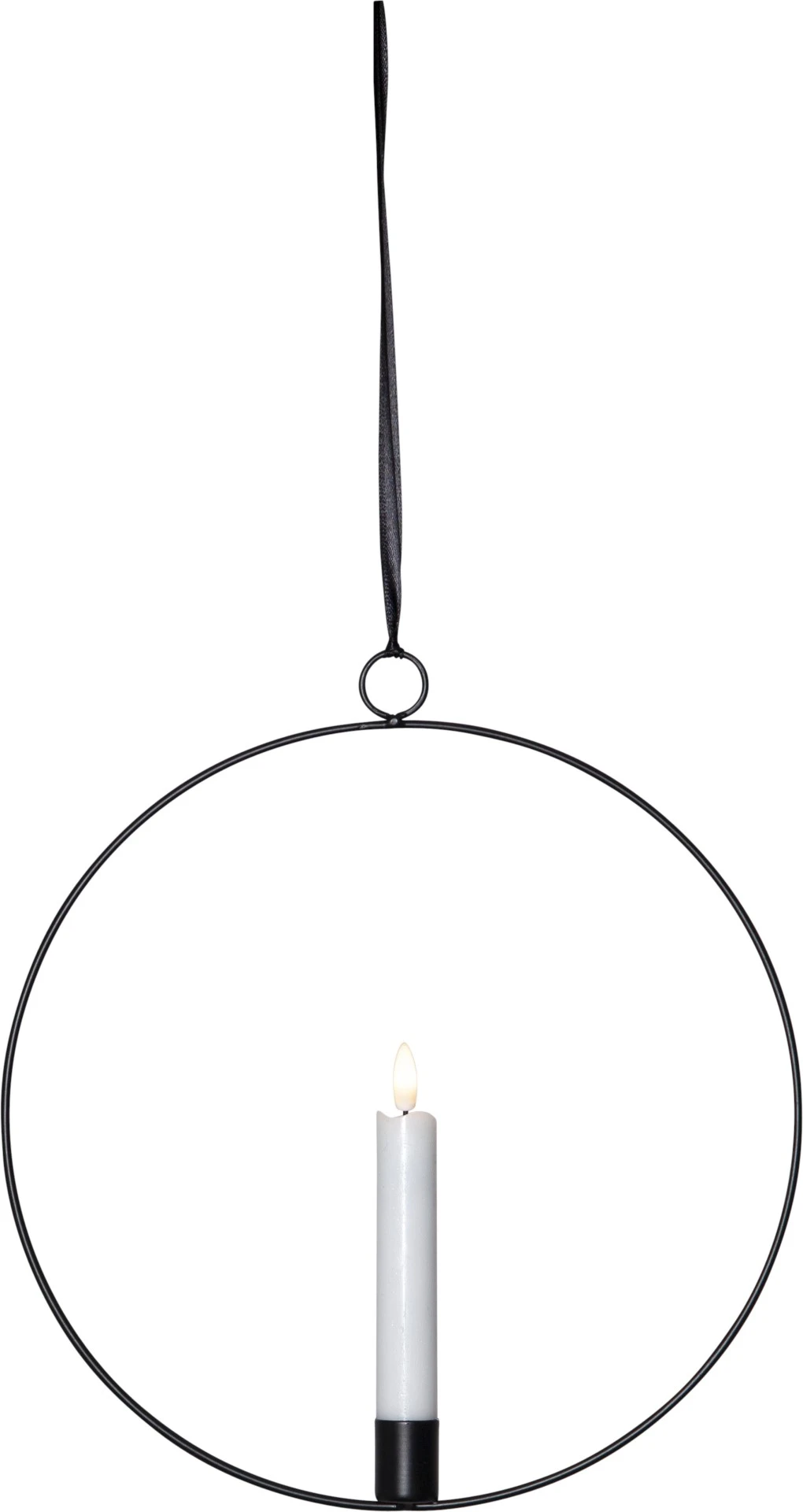 Dekoracja wisząca LED świeca FLAMME RING Czarna 28cm na baterie