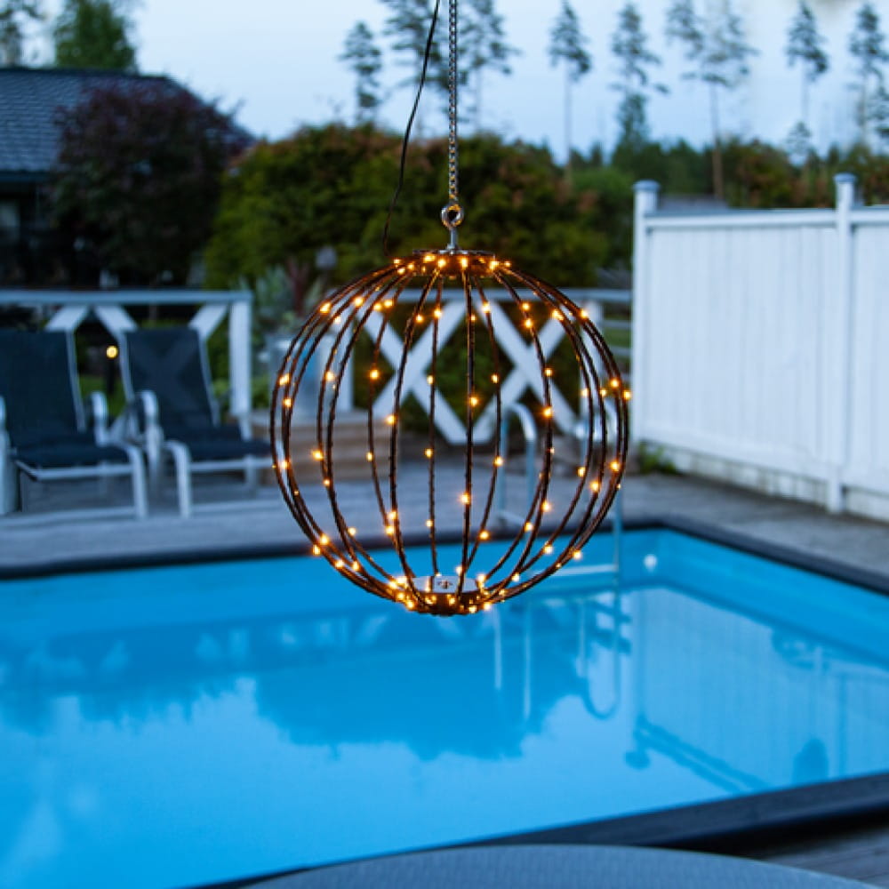 Odporność na warunki atmosferyczne - dzięki klasie szczelności IP44 kula jest odporna na deszcz i wilgoć, co sprawia, że doskonale nadaje się do użytku zewnętrznego.
