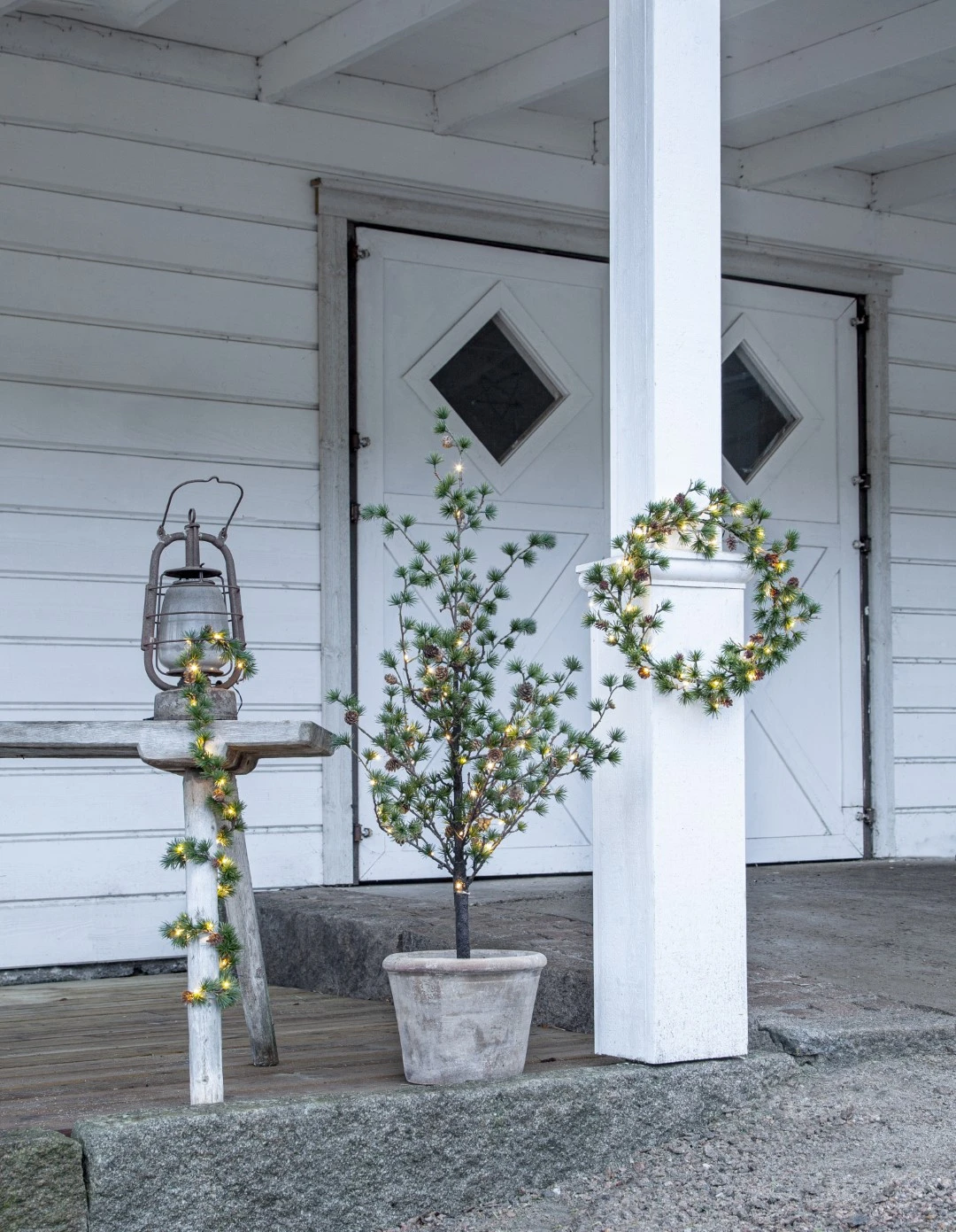 LARIX to efektowne drzewko dekoracyjne inspirowane naturalnym modrzewiem, wzbogacone o realistyczne szyszki i subtelne oświetlenie LED. Dzięki smukłej sylwetce i eleganckiemu pokrojowi doskonale sprawdzi się zarówno w przestrzeniach domowych, jak i komercyjnych. Harmonijnie łączy naturalny charakter z nowoczesną technologią LED, tworząc niepowtarzalny klimat.