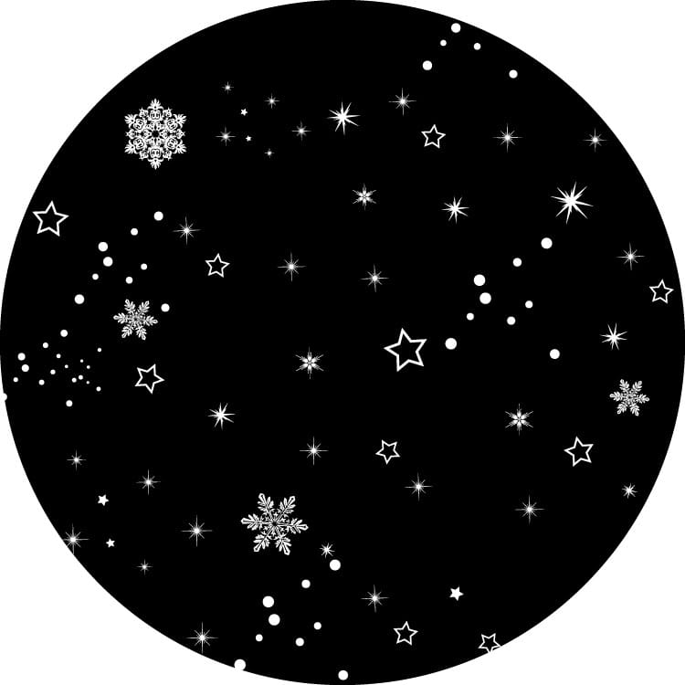 Efekt dynamiczny 176 mm pasujący do projektorów PROIETTA IMPRESSIVE i THOROK. Efekt spadających gwiazdek i śnieżynek w kolorze białym. Czarne tło przedstawione na grafice jest tylko przysłoną dla strumienia światła. Finalny efekt wizualny podczas projekcji to gwiazdki i śnieżynki bez tła. Efekt dostępny również w wersji 110 mm pasujący do projektorów IRIDIUM i DIAMOND