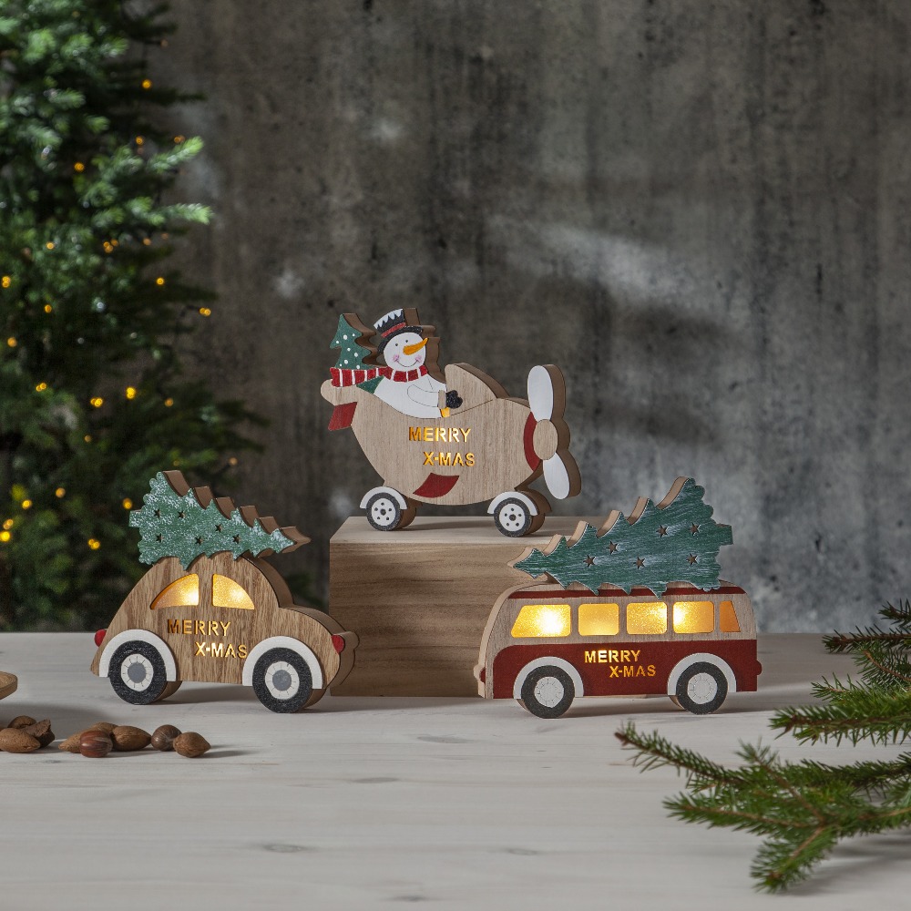 Figurka drewniany samochodzik z choinką Led BILLY 17cm na baterii