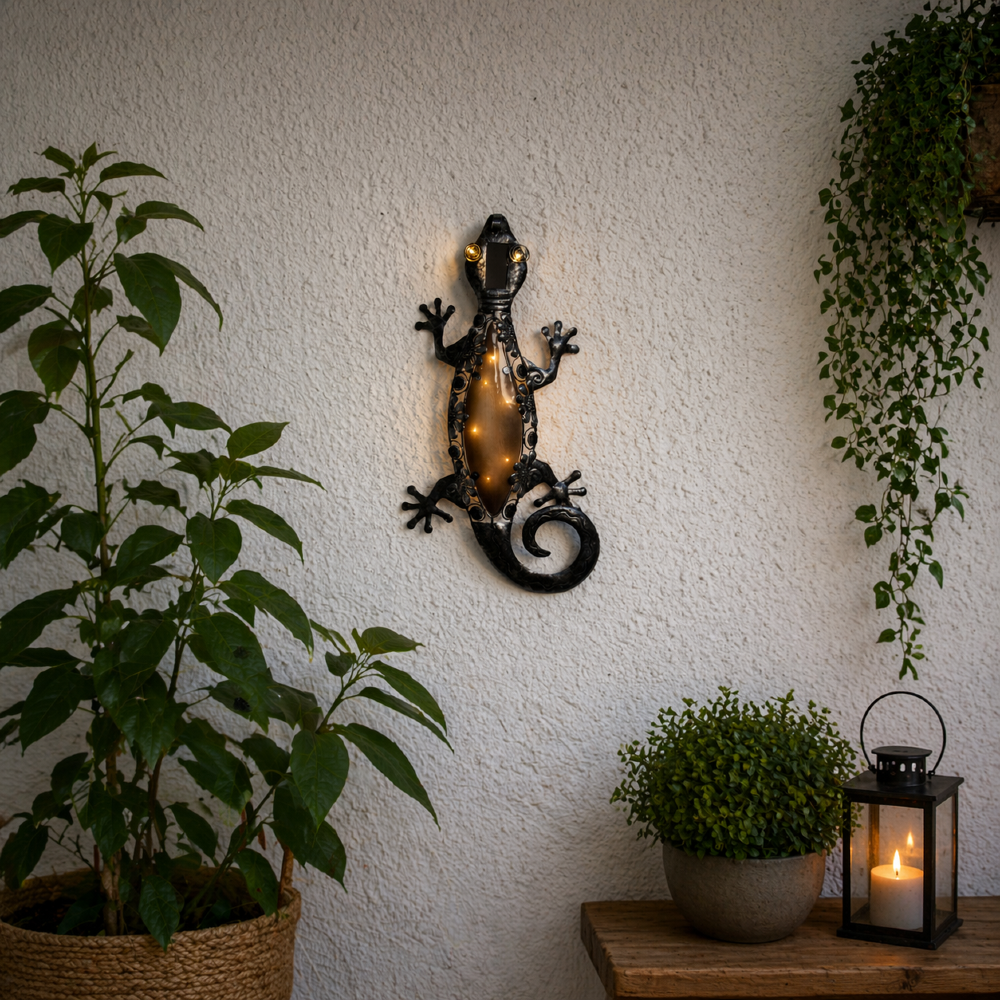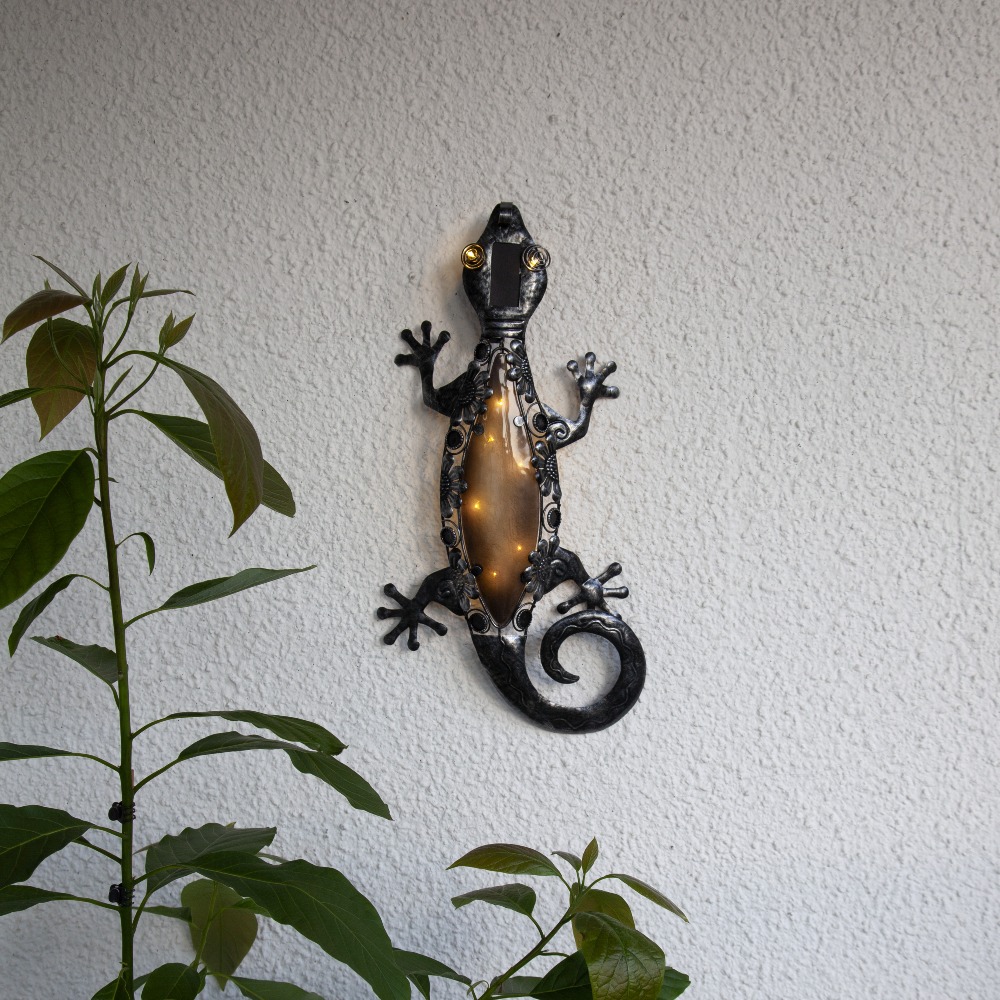 Gekon solarna dekoracja ogrodowa LED ścienna