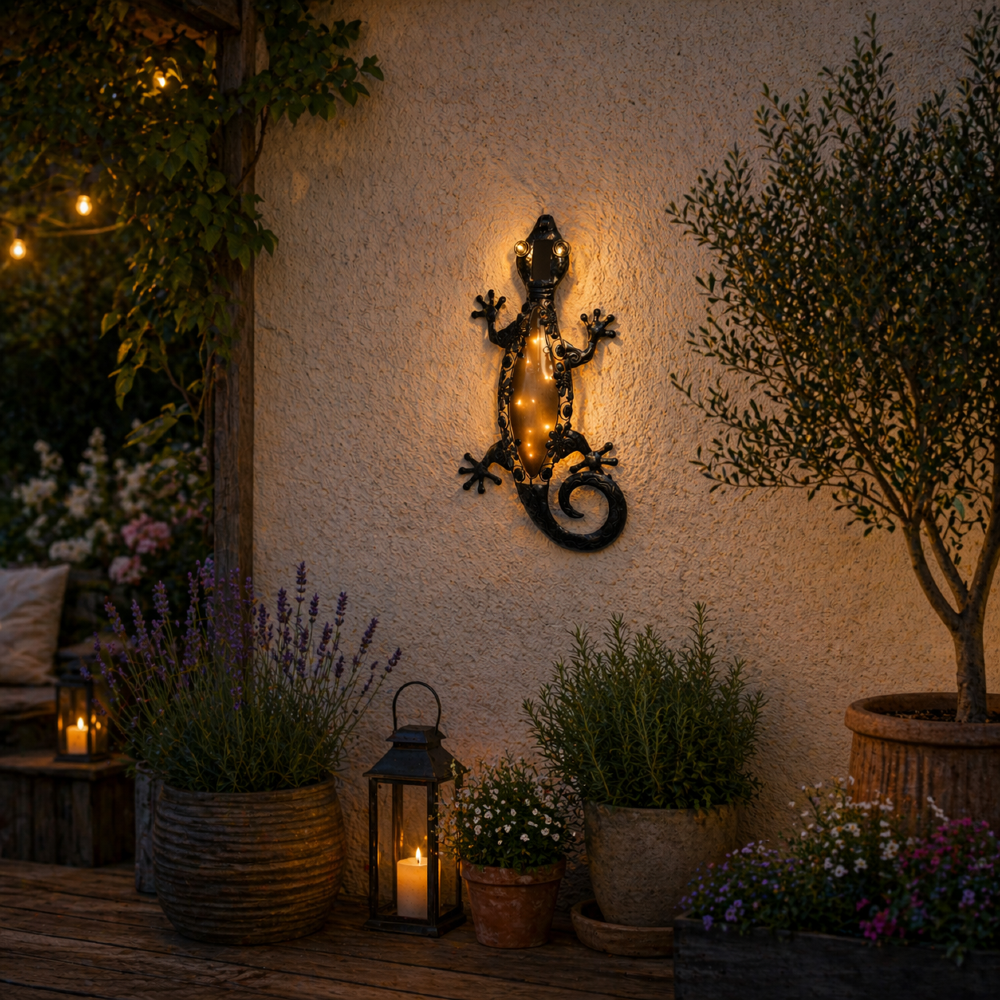 Dodaj oryginalnego akcentu do swojego ogrodu, balkonu lub tarasu dzięki dekoracyjnej jaszczurce LED! Jej wyjątkowy design przyciąga wzrok zarówno w ciągu dnia, jak i po zmroku. Dekoracja przeznaczona do zawieszenia na ścianie, doskonale komponuje się z elewacją domu, altany czy ogrodowej pergoli. Ożyw swoją przestrzeń z niezwykłą dekoracją LED!