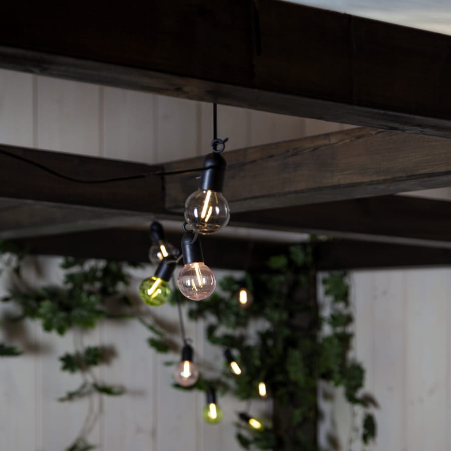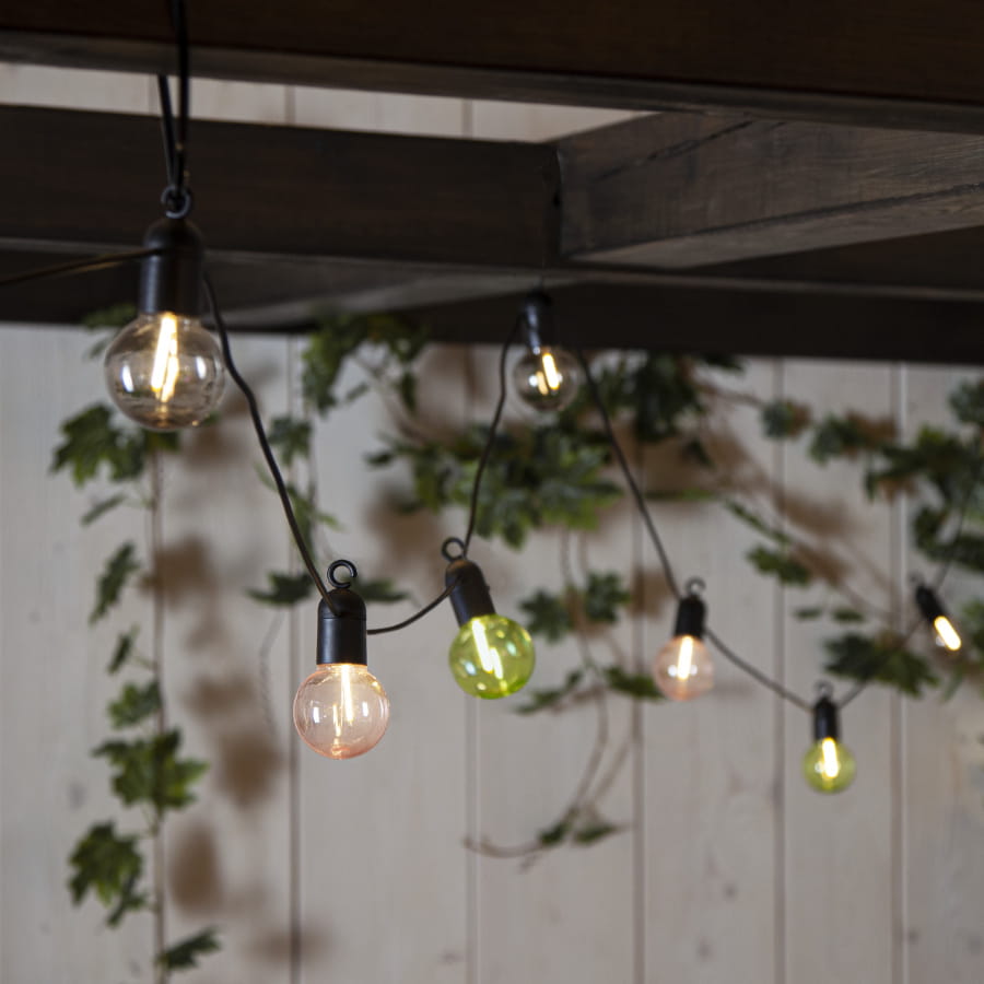 Kolorowe klosze – subtelna gra świateł - girlanda składa się z 10 żarówek LED w delikatnych, pastelowych kolorach, które harmonijnie komponują się w każdej przestrzeni. To doskonały dodatek do naturalnego otoczenia ogrodu.