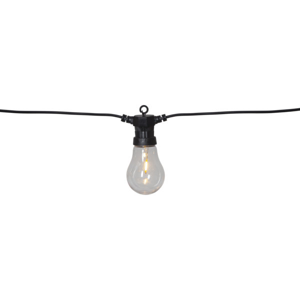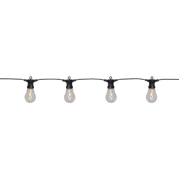Rozświetl swój ogród, taras lub altankę przyjemnym, ciepłym światłem dzięki stylowej girlandzie LED. Klasyczne, przezroczyste klosze w kształcie tradycyjnych żarówek i nowoczesna technologia LED Filament sprawiają, że to idealne połączenie estetyki i energooszczędności. Girlanda ma długość 4,05 metra, a dodatkowe 5 metrów przewodu zasilającego daje łączną długość 9,05 metra, co zapewnia wygodne rozmieszczenie w ogrodzie, na balkonie czy altanie. Zasilana z gniazda sieciowego.