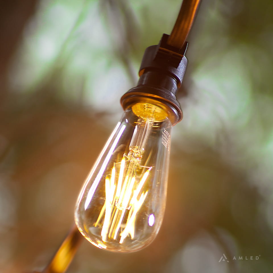 Zaprojektuj dekoracyjne oświetlenie plenerowe, które robi wrażenie! Profesjonalna girlanda świetlna w zestawie z żarówkami LED Filament ST64 o mocy 4W to idealne rozwiązanie do stylowych aranżacji z nutą nostalgii. Bursztynowe szkło i klasyczny kształt żarówki Edisona w połączeniu z bardzo ciepłą barwą światła 2200K tworzą niezwykle nastrojowy klimat – idealny na wesela, garden party, czy do restauracyjnych ogródków.