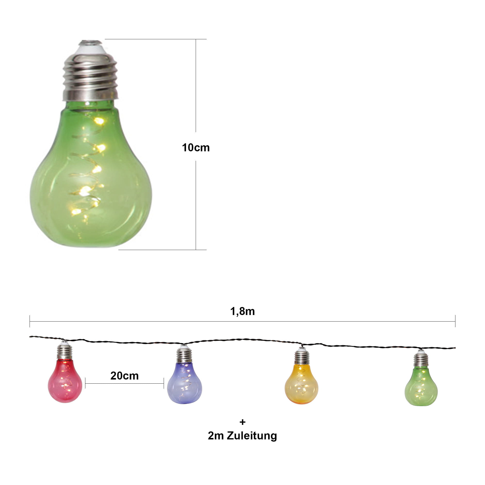 Kolorowe żarówki – efektowna dekoracja świetlna - girlanda składa się z żarówek w odcieniach czerwonym, niebieskim, zielonym i żółtym, które nadają przestrzeni żywego i dynamicznego wyglądu. Transparentne klosze w połączeniu z subtelnym światłem LED tworzą wyjątkowy efekt wizualny.