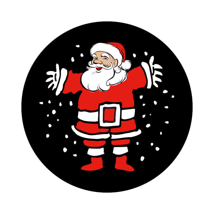Efekt statyczny świąteczny z motywem Świetego Mikołaja. Gobos dostępny w trzech rozmiarach: 70 mm pasujący do projektorów PROIETTA IMPRESSIVE i THOROK, 50 mm pasujący do projektorów PHOSE i 37,3 mm pasujący do projektorów IRIDIUM i DIAMOND. Czarne tło przedstawione na grafice jest tylko przysłoną dla strumienia światła i nie widoczne podczas projekcji