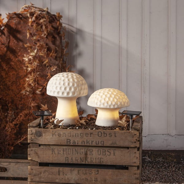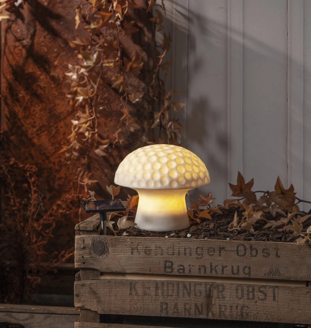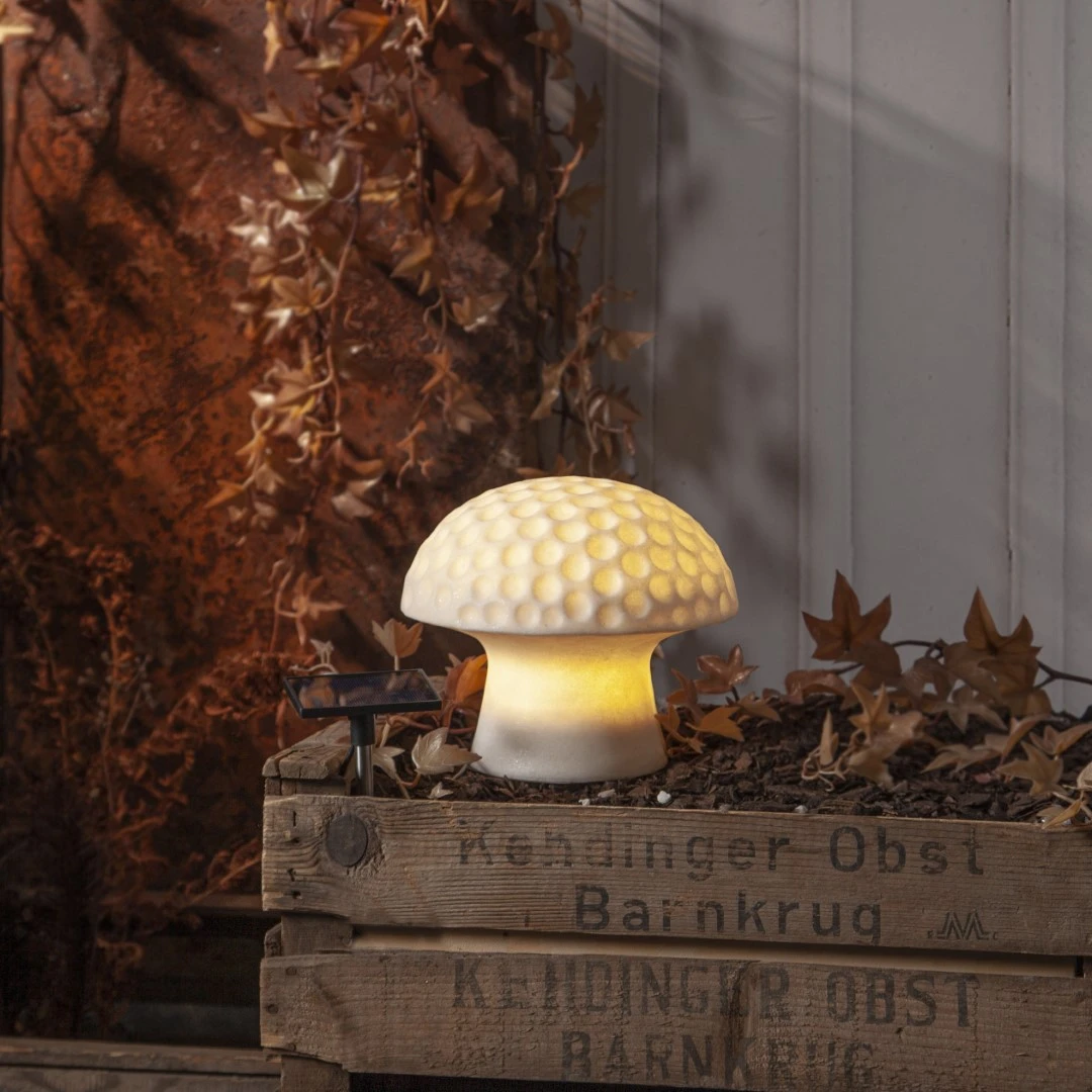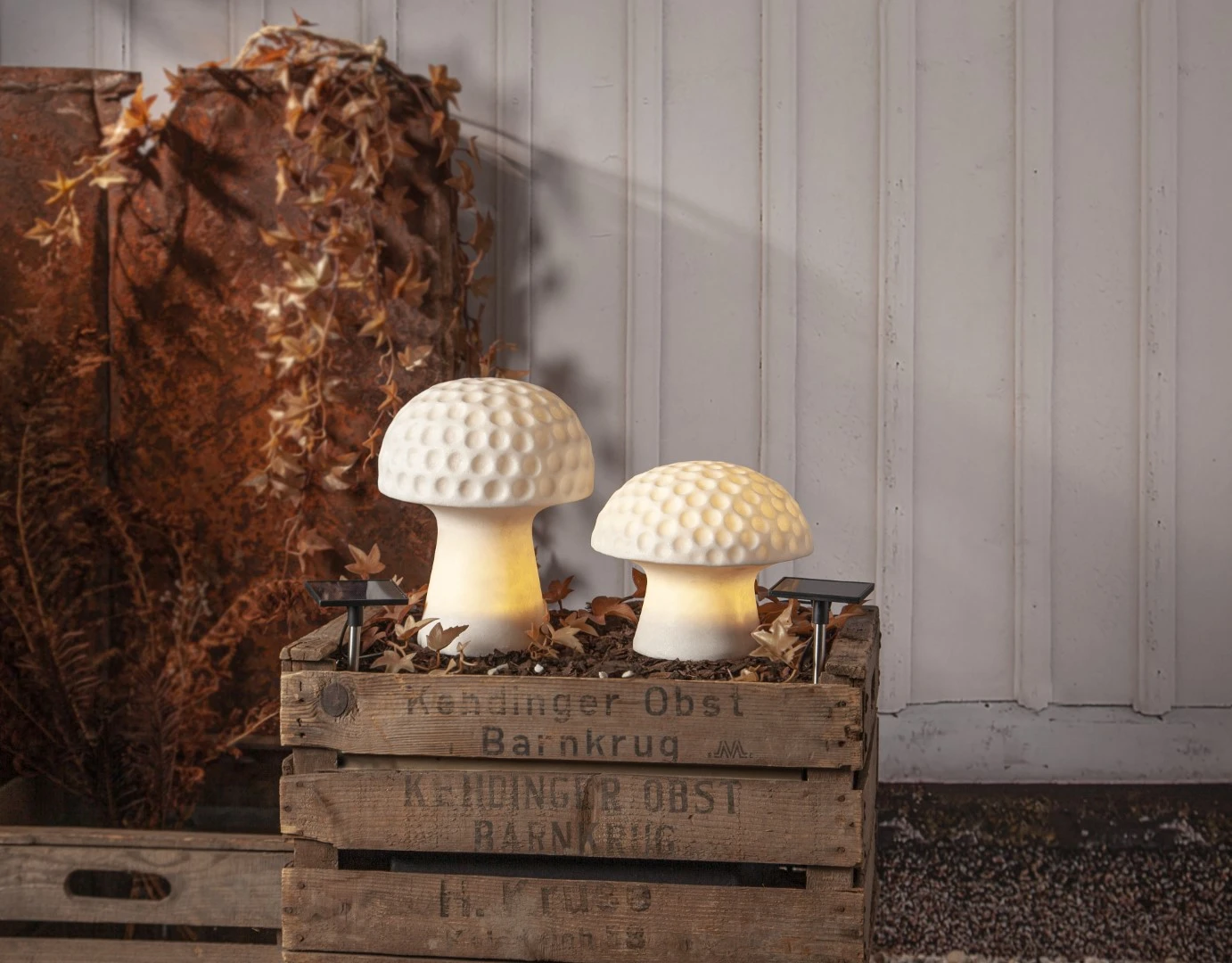 Dekoracyjna lampa ogrodowa w kształcie grzyba to wyjątkowy dodatek do Twojego ogrodu, balkonu czy tarasu. Wykonana z mieszanki żywicy i piasku, wyróżnia się naturalnym wyglądem i wyjątkową fakturą, dzięki której każda sztuka jest unikalna. Lampa jest częścią serii Sandy, w której znajdziesz również inne wyjątkowe dekoracje, takie jak dynie, kule czy grzyby w różnych rozmiarach.