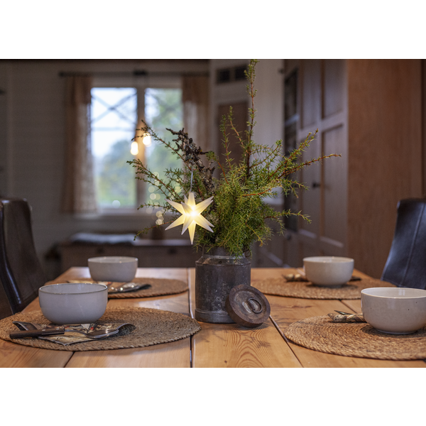 Średnica 10 cm i forma 3D – kompaktowy rozmiar i przestrzenny kształt czynią gwiazdę uniwersalnym akcentem dekoracyjnym.