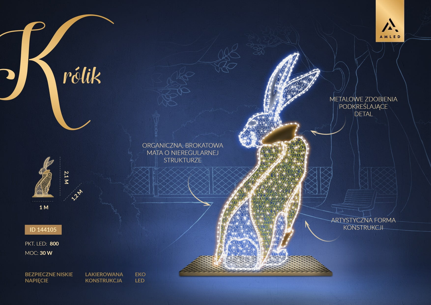 Iluminacja świąteczna wolnostojąca LED Królik 2D AM-144105