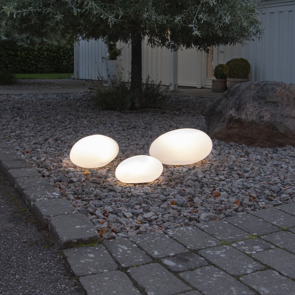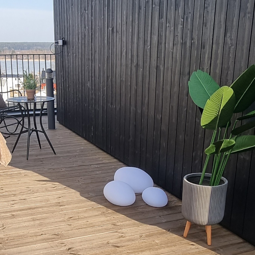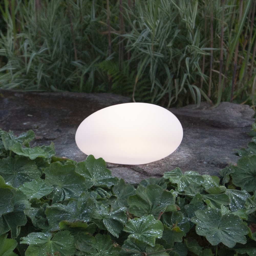 Odporność na warunki atmosferyczne - solidne wykonanie i wodoodporność (IP44) sprawiają, że kamień doskonale sprawdza się w ogrodzie przez cały rok, zachowując estetyczny wygląd i funkcjonalność.