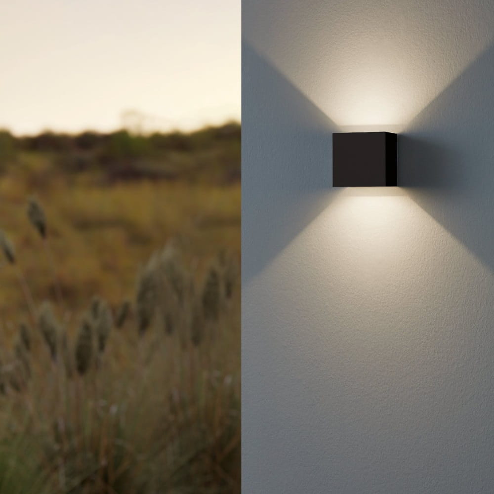 Dodaj wyjątkowego charakteru swojej elewacji dzięki zewnętrznej lampie ściennej CALPINO 3. Jej minimalistyczny design w formie czarnego sześcianu oraz światło skierowane jednocześnie w górę i w dół tworzą niezwykle efektowną iluminację ściany. To doskonałe rozwiązanie dla miłośników nowoczesnej architektury, którzy szukają nie tylko funkcjonalnego, ale i dekoracyjnego oświetlenia.