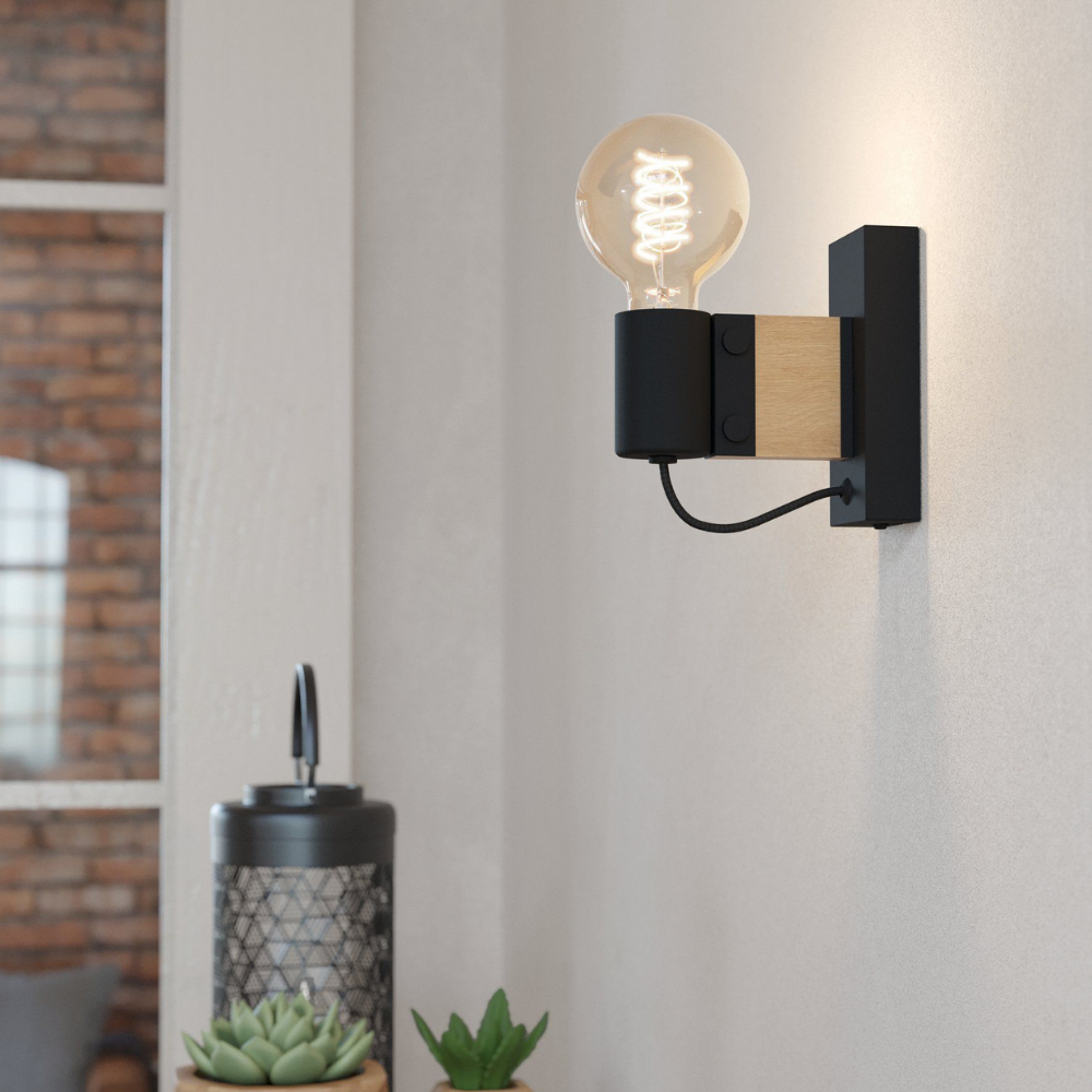 Kinkiet ścienny BAILRIGG to połączenie nowoczesnej funkcjonalności i ciepłego, naturalnego designu. Czarne wykończenie metalu i brązowe drewno tworzą wyrazistą, ale uniwersalną kompozycję do każdego wnętrza.