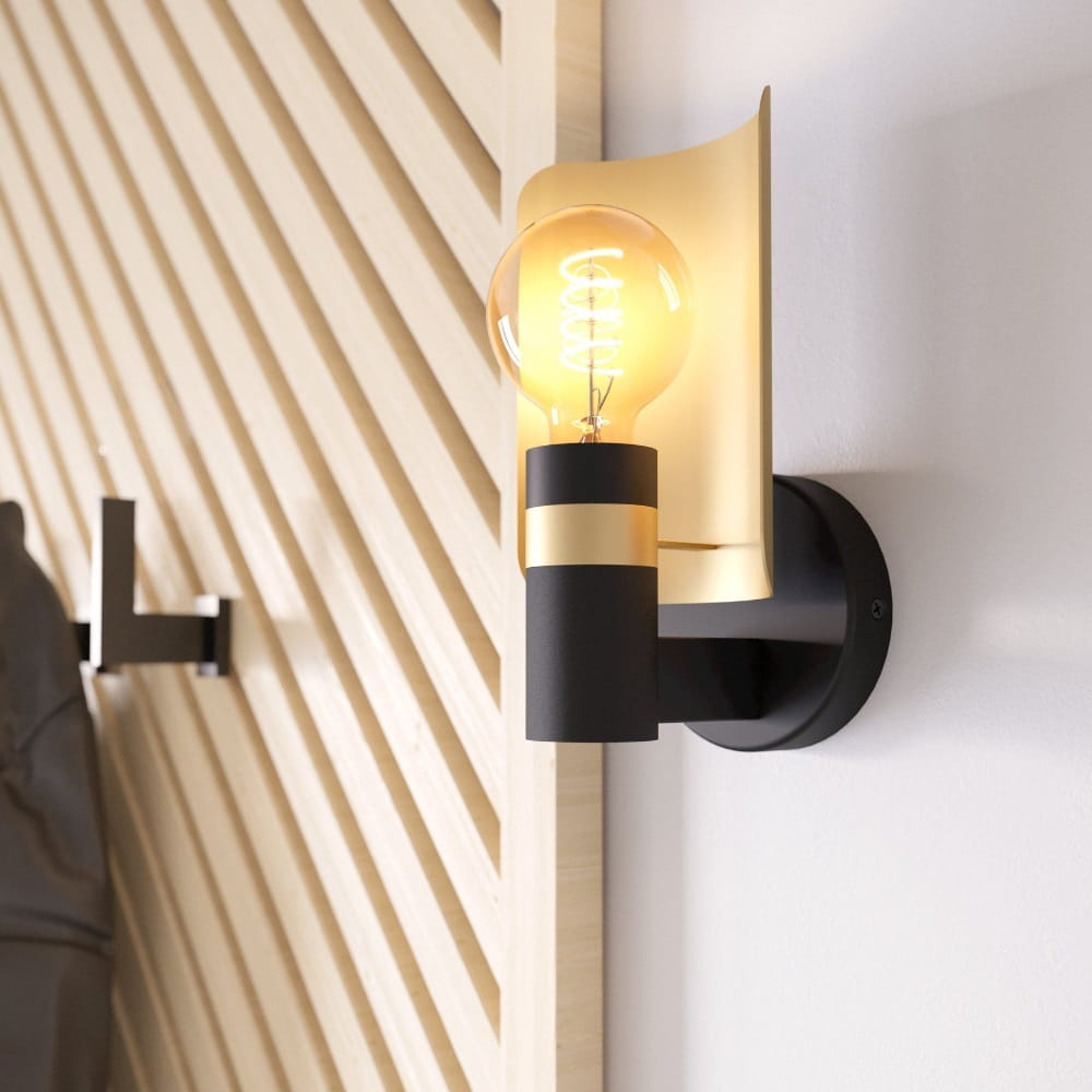 Kinkiet ścienny HAYES metalowy czarny złoty E27