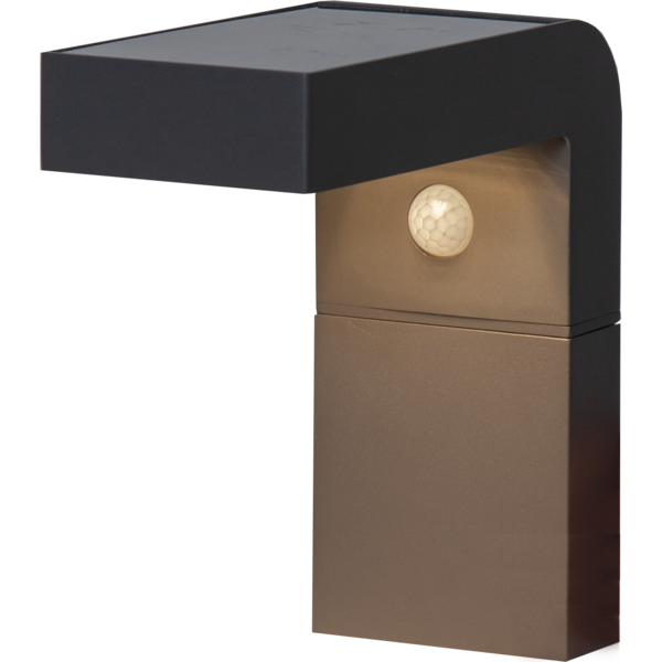 Solarny kinkiet LED VICI czarna obudowa widok produktu na białym tle czujnik ruchu PIR minimalistyczna forma nowoczesne oświetlenie zewnętrzne.