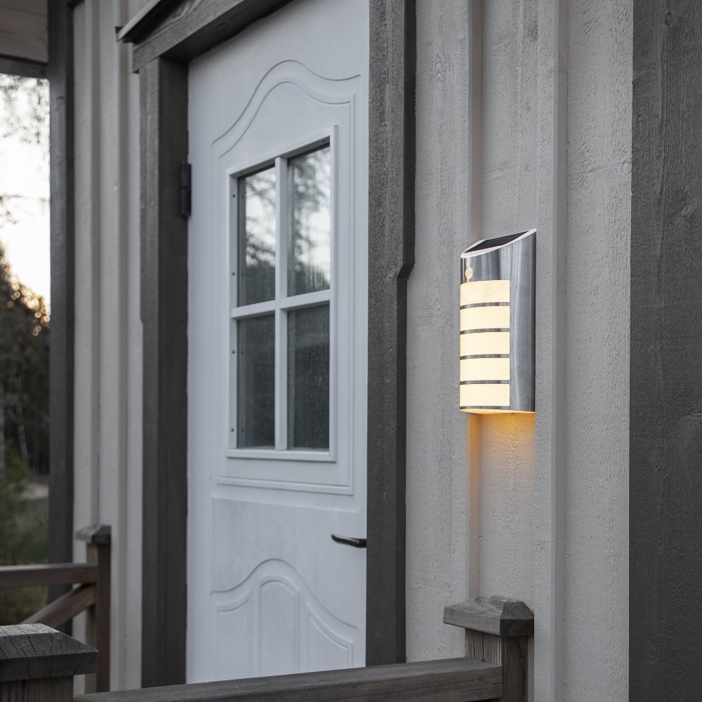 Elegancki kinkiet solarny o nowoczesnym wzornictwie – idealne oświetlenie dla elewacji, tarasów i wejść do budynków. Dzięki wbudowanemu panelowi solarnemu działa bez potrzeby podłączenia do prądu, zapewniając ekologiczne i energooszczędne rozwiązanie. Dzięki eleganckiemu wyglądowi i inteligentnym funkcjom ten kinkiet to doskonałe rozwiązanie do nowoczesnych przestrzeni zewnętrznych.
