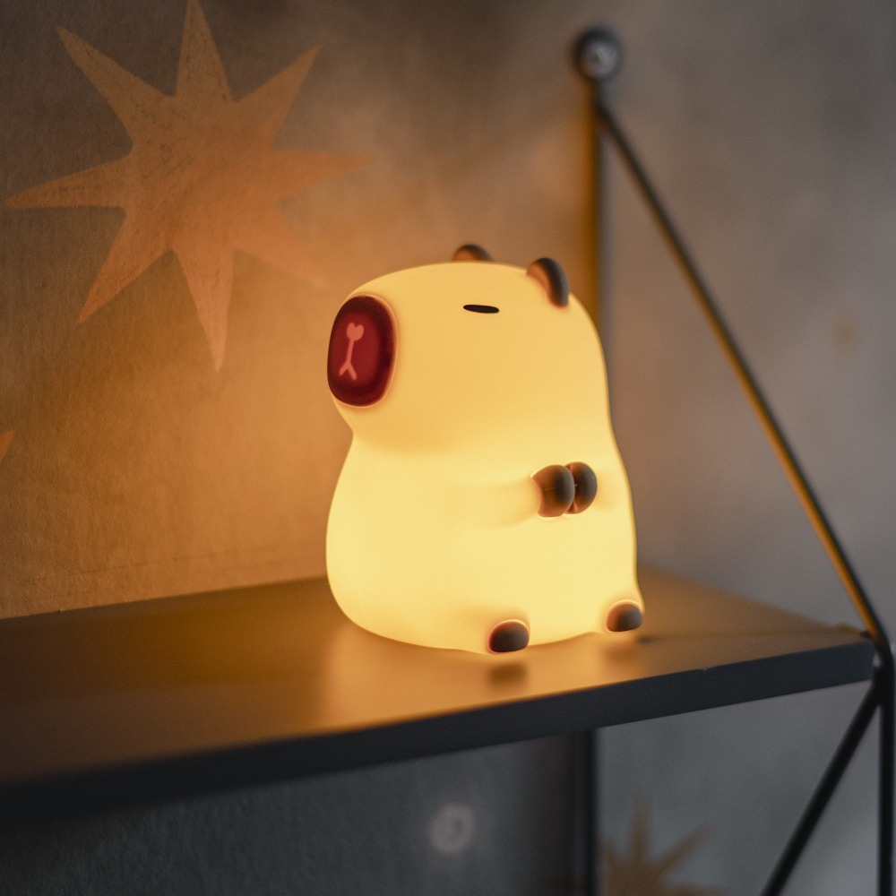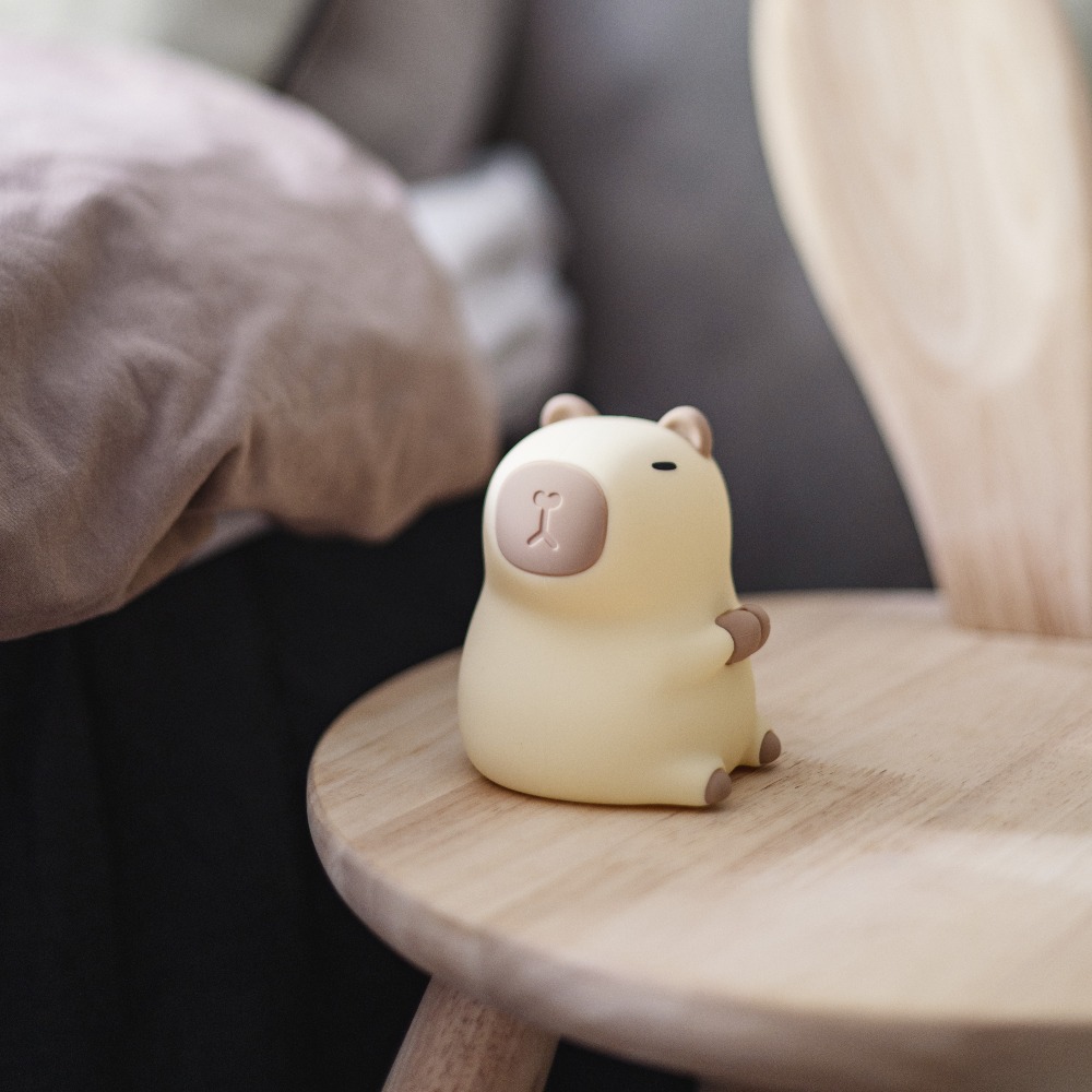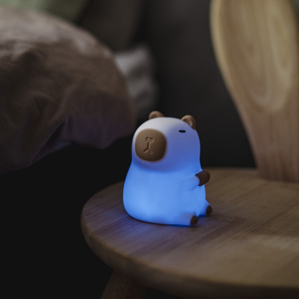 Lampka nocna kapibara z ciepłym światłem i kablem USB-C w zestawie.
