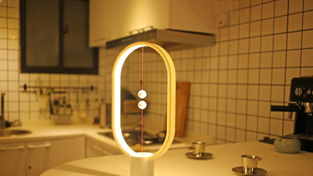 Aby zapalić światło, wystarczy unieść dolną kulę i „zawiesić” ją w powietrzu dzięki przyciąganiu kuli górnej