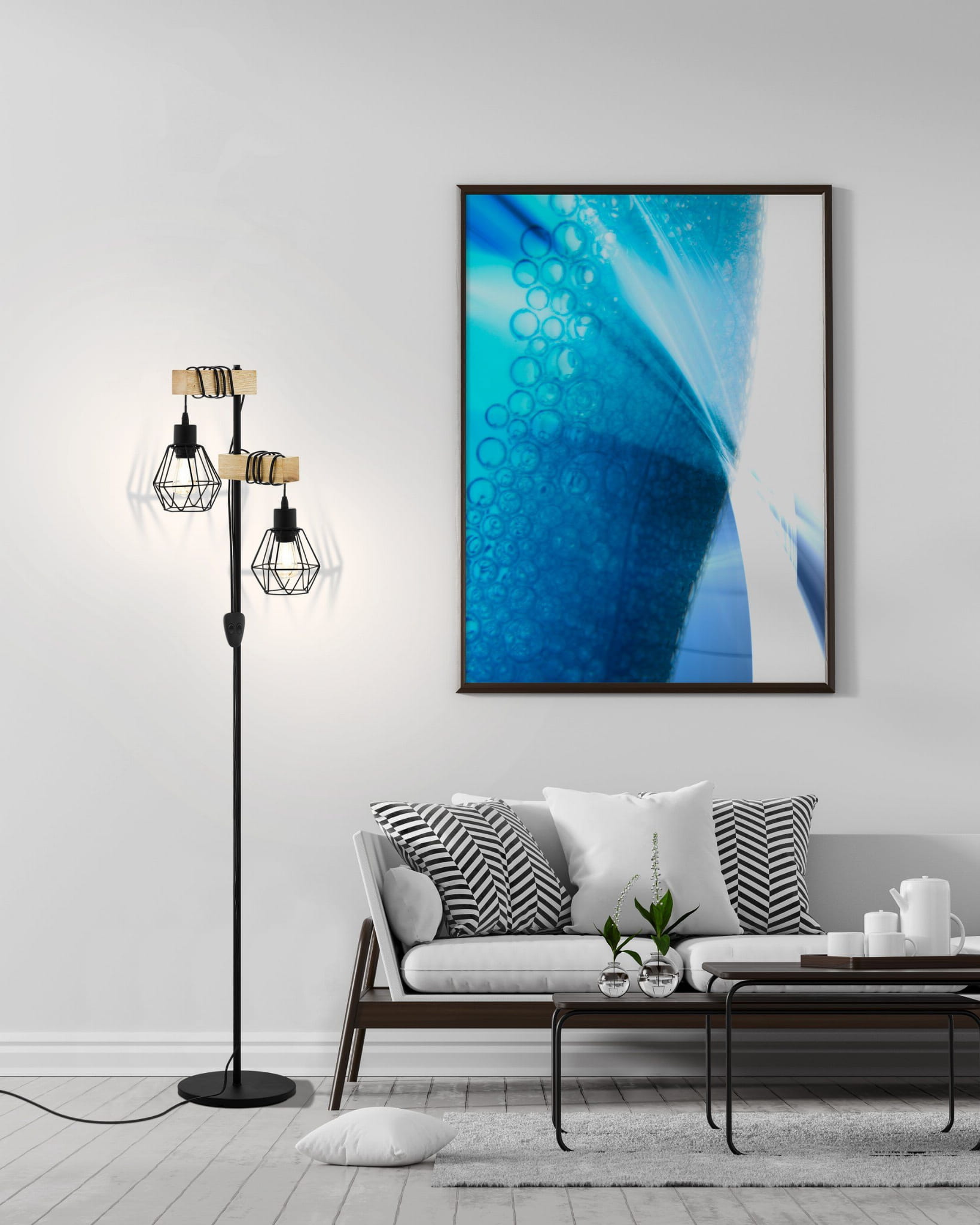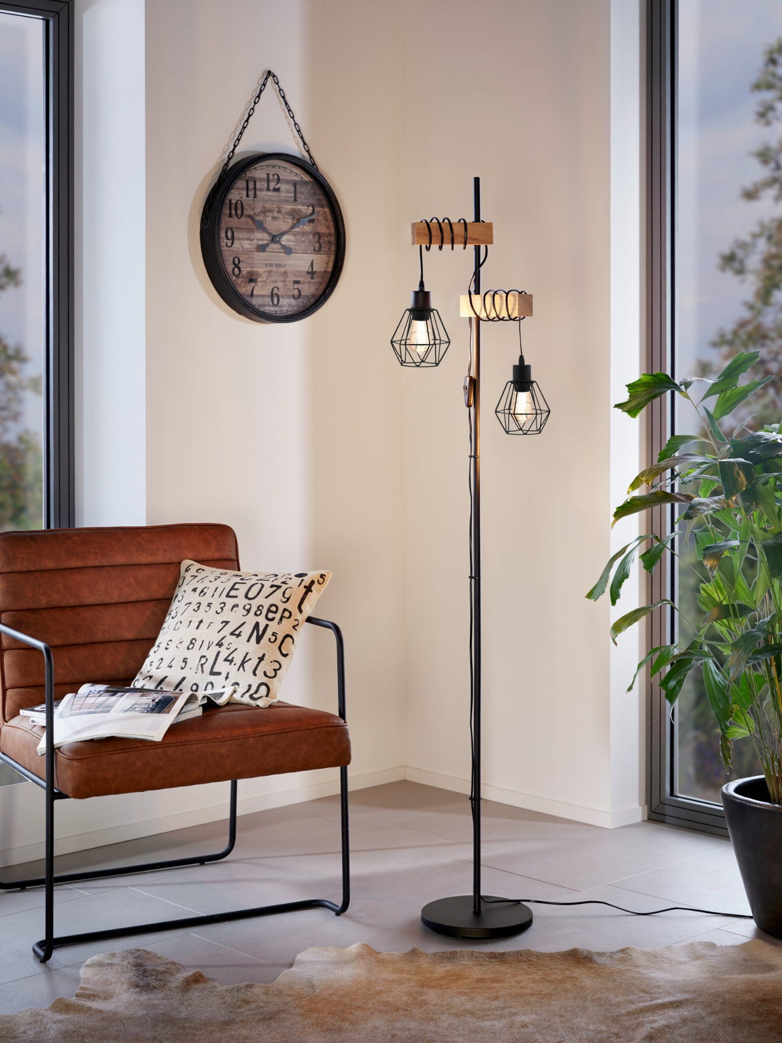 Lampa podłogowa TOWNSHEND 5 to mocny, designerski akcent oświetleniowy w stylu vintage. Jej charakterystyczna konstrukcja z naturalnego drewna i czarnego metalu oferuje aż trzy oprawki E27, które zawieszone są swobodnie na poziomej belce. Każda z nich tworzy osobne źródło światła, co pozwala na zbudowanie wyjątkowego klimatu w salonie, gabinecie czy sypialni. Brak kloszy umożliwia pełną ekspozycję dekoracyjnych żarówek, dzięki czemu lampa pełni również funkcję stylowej dekoracji.