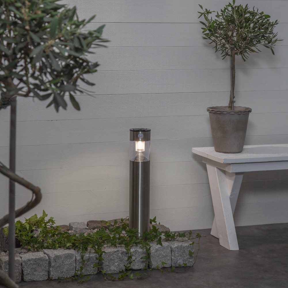 Stylowa lampa ogrodowa, zasilana energią słoneczną, o wysokości 50 cm, idealna do oświetlenia ścieżek, podjazdów, tarasów czy ogrodowych zakątków. Dzięki metalowej obudowie i nowoczesnemu designowi świetnie komponuje się z różnymi aranżacjami przestrzeni zewnętrznych. Lampa wyposażona w sztycę do wbicia w ziemię, co umożliwia szybkie i stabilne ustawienie bez potrzeby dodatkowych narzędzi.