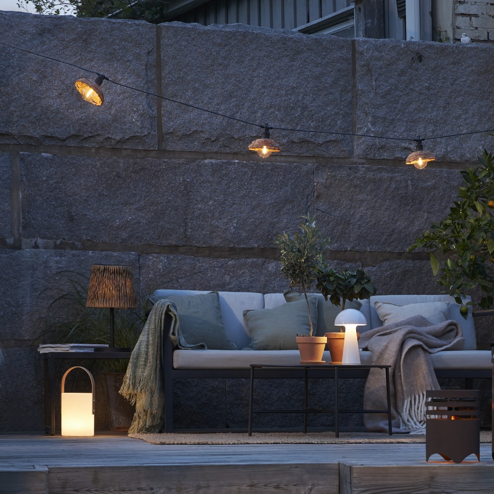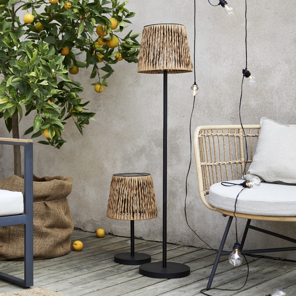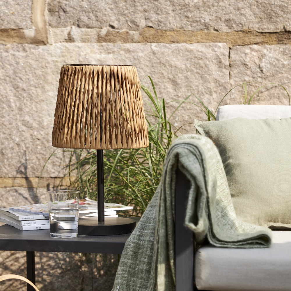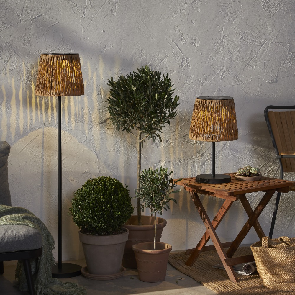 Elegancka lampa stołowa inspirowana naturalnym designem, doskonale sprawdzi się w ogrodzie, na balkonie lub tarasie, wprowadzając ciepłą i przytulną atmosferę. Rattanowy klosz w ciepłym brązowym kolorze w połączeniu z czarną, metalową podstawą nadaje lampie wyjątkowy styl, który doskonale komponuje się z różnymi aranżacjami ogrodowymi.