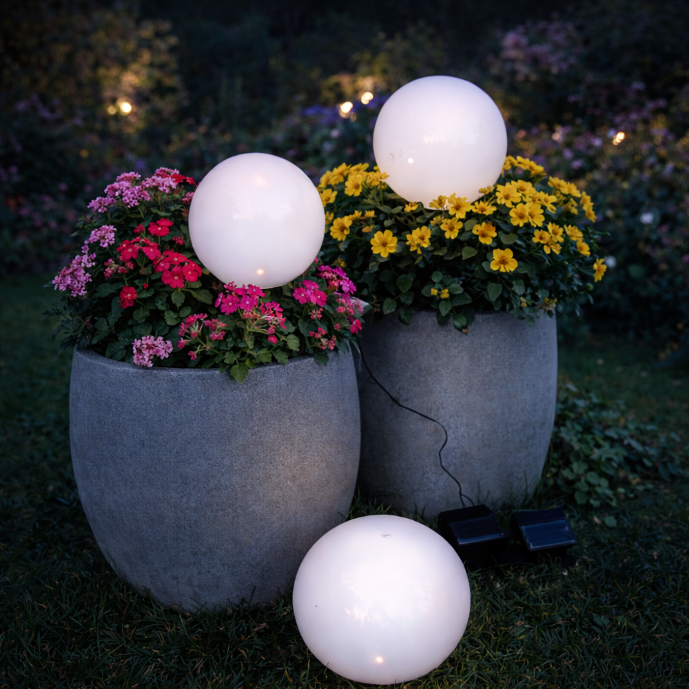 Lampa solarna LED GLOBUS o średnicy 15 cm to elegancki i nowoczesny element dekoracyjny, który subtelnie rozświetli Twój ogród, taras czy ścieżki wokół domu. Dzięki minimalistycznemu designowi i białej obudowie harmonijnie komponuje się z otoczeniem, nadając mu wyjątkowy charakter. Kształt kuli oraz przezroczysta, matowa powierzchnia sprawiają, że światło jest delikatnie rozproszone, co podkreśla elegancki wygląd lampy. Doskonale pasuje zarówno do nowoczesnych, jak i klasycznych aranżacji ogrodowych.