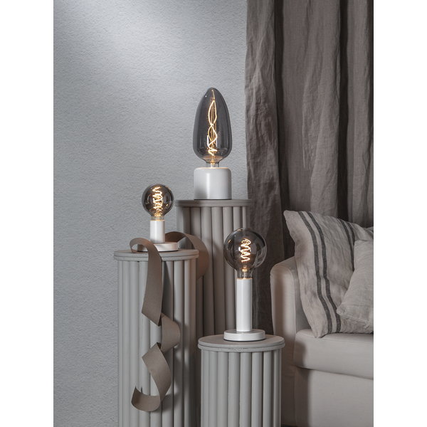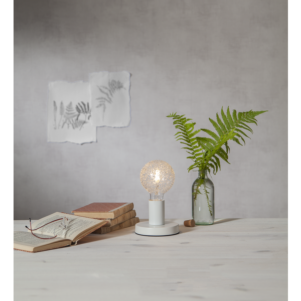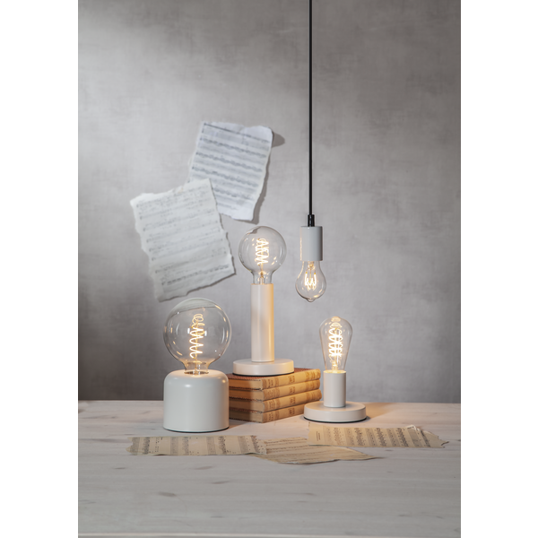 Lampa stołowa GLANS w kolorze białym to stylowa baza pod żarówkę E27, która świetnie sprawdzi się jako oświetlenie pomocnicze w salonie, sypialni czy przedpokoju. Minimalistyczna forma i neutralny kolor sprawiają, że doskonale komponuje się z różnymi rodzajami dekoracyjnych żarówek oraz nowoczesnymi i skandynawskimi aranżacjami wnętrz. To uniwersalna podstawa, która doda lekkości i funkcjonalności każdemu pomieszczeniu.