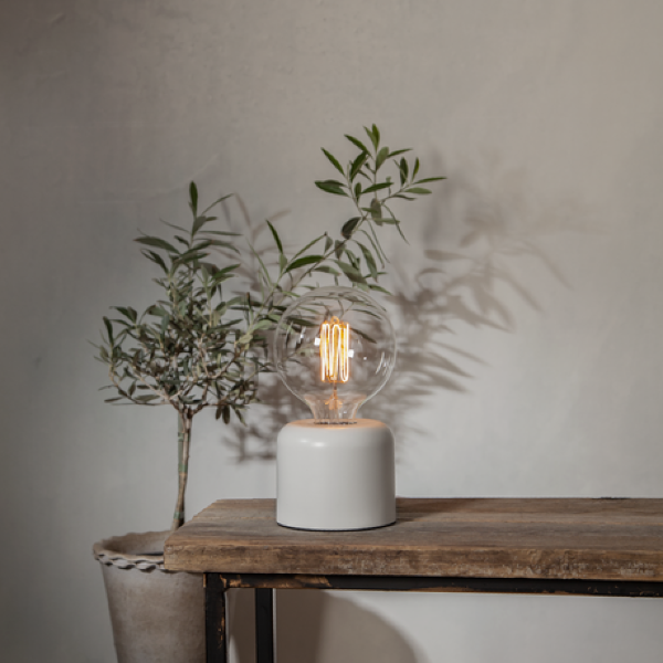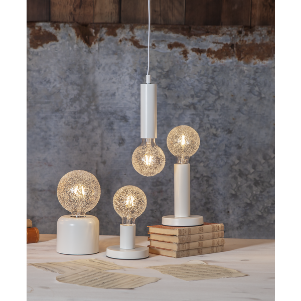 Lampa stołowa GLANS w białym wykończeniu z wyłącznikiem na przewodzie to elegancka i praktyczna baza pod żarówkę E27. Prosta forma, neutralny kolor i kompaktowe wymiary sprawiają, że doskonale sprawdza się jako oświetlenie dodatkowe w salonie, sypialni czy biurze. Zintegrowany włącznik zwiększa wygodę użytkowania, a minimalistyczny design pozwala dopasować lampę do różnych stylów wnętrz.
