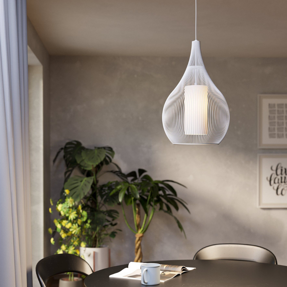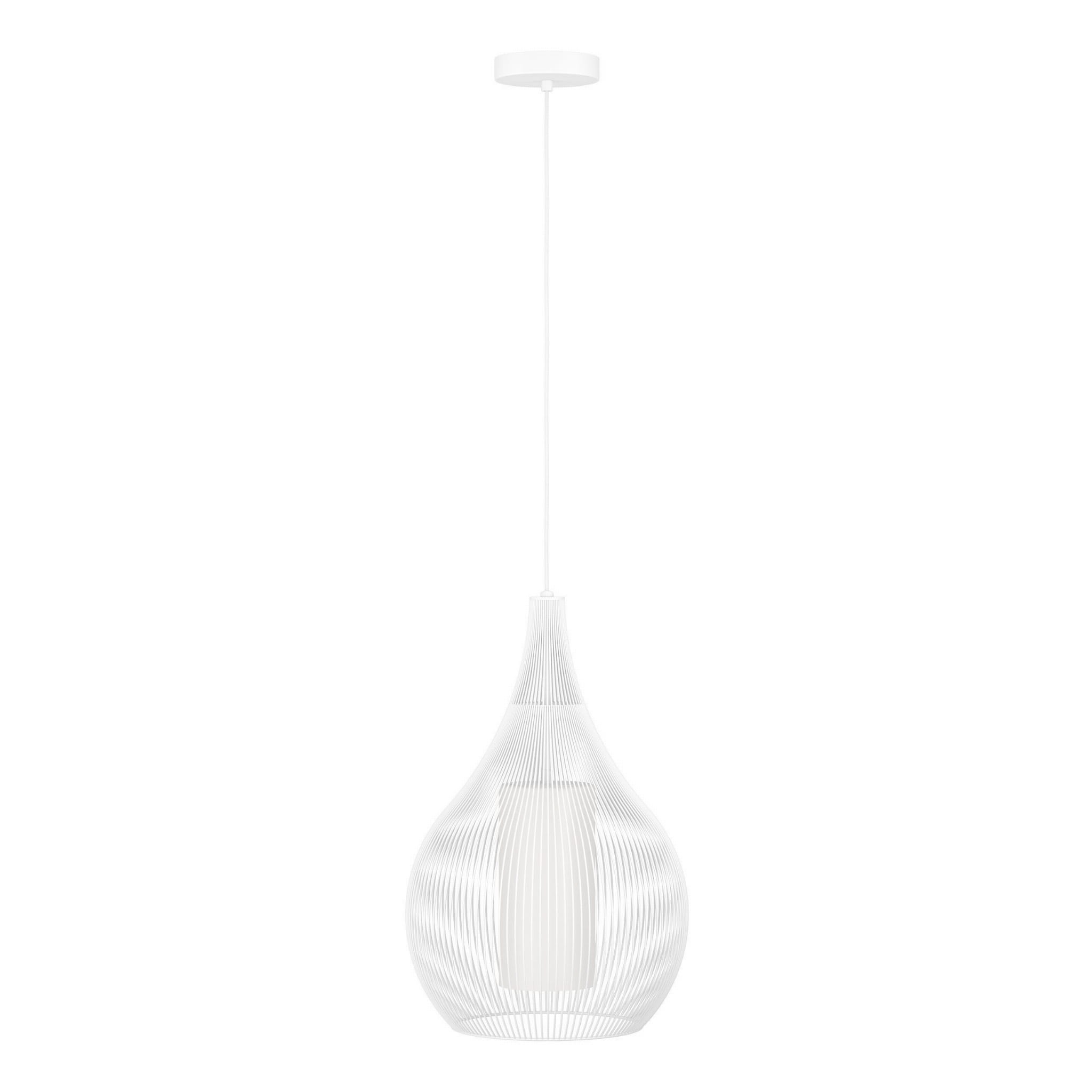 Lampa wisząca RAZONI 1 metal szkło biały druciany abażur E27