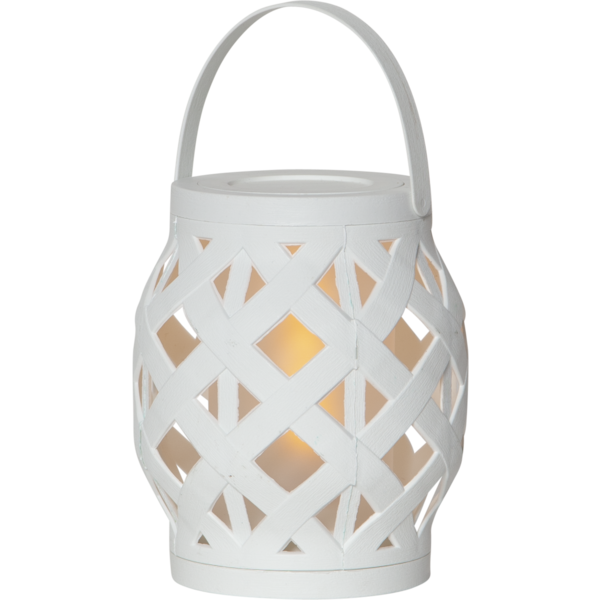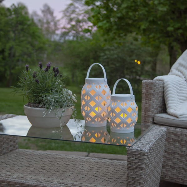 Stylowy lampion LED z efektem płomienia, który doskonale sprawdzi się zarówno wewnątrz pomieszczeń, jak i na zewnątrz. Elegancka biała obudowa w ażurowym wzorze nadaje mu wyjątkowy, dekoracyjny charakter, Idealny jako ozdoba stołu, tarasu czy altany, lampion LED sprawdzi się zarówno podczas letnich wieczorów na świeżym powietrzu, jak i jako stylowy dodatek do wnętrz. Działa na baterie, co zapewnia pełną mobilność i możliwość umieszczenia lampionu w dowolnym miejscu, bez konieczności podłączania do prądu.
