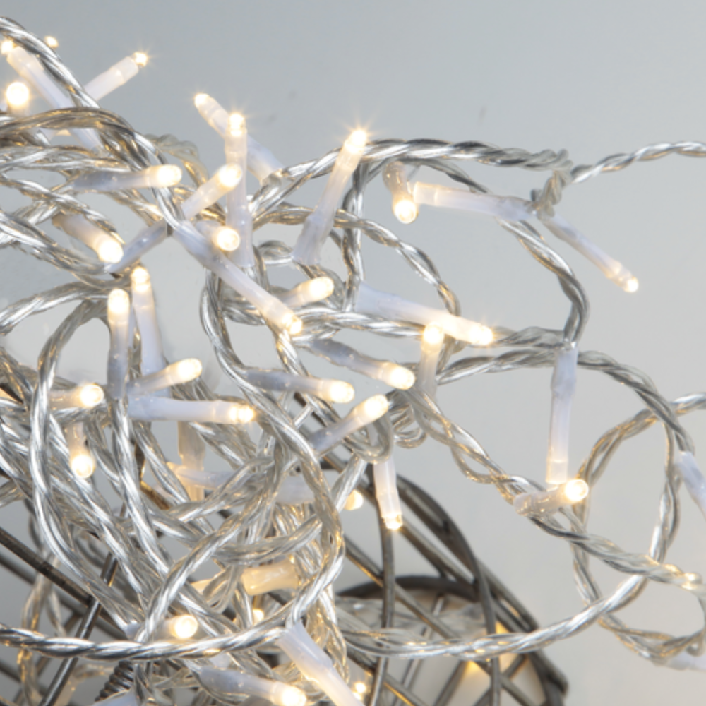 Długi łańcuch z równomiernym rozmieszczeniem diod – aż 180 diod LED emitujących ciepłą białą barwę rozmieszczonych na 18-metrowym przewodzie tworzy subtelny, ale wyrazisty efekt świetlny.